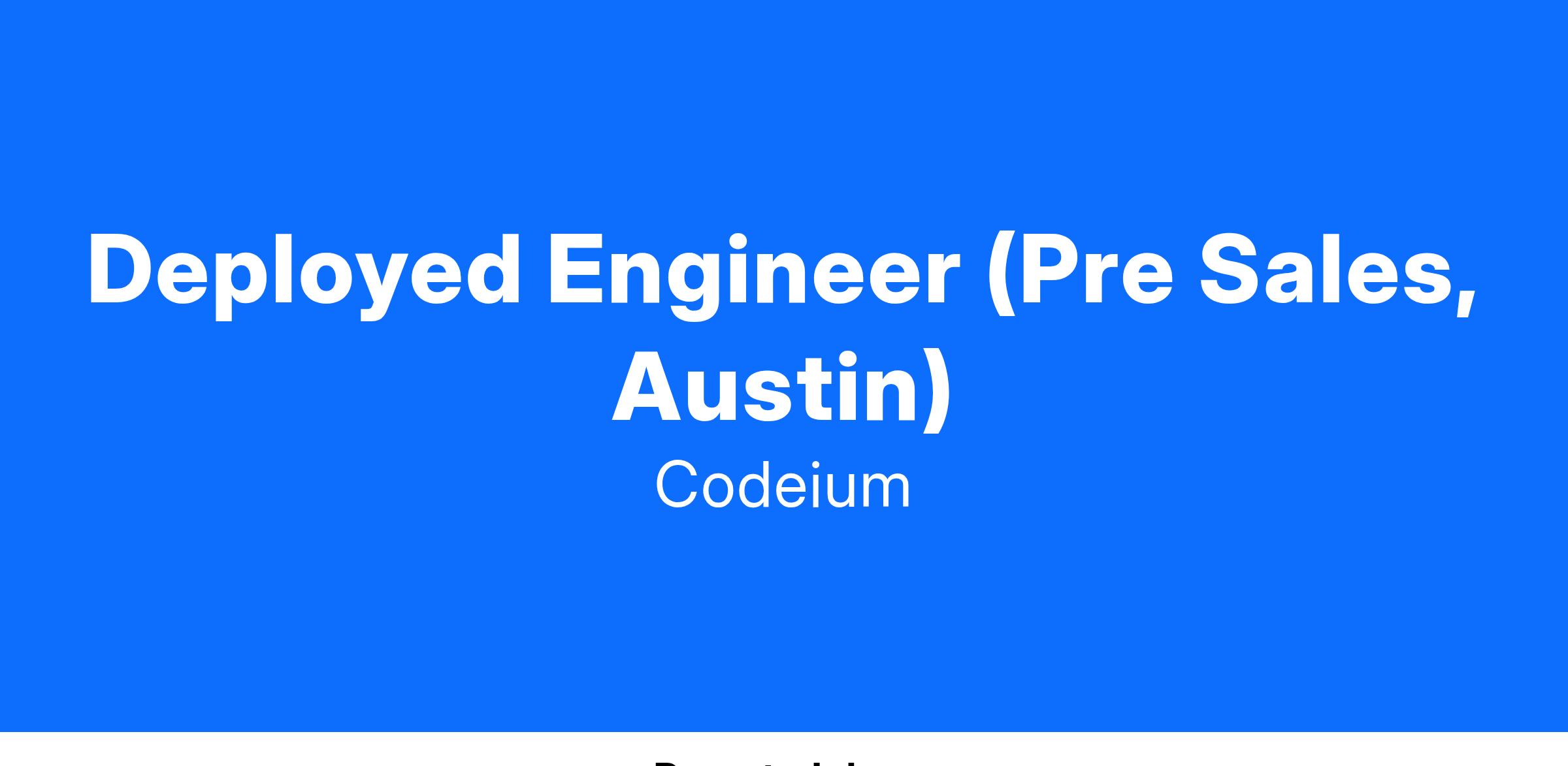 As a Pre-sales Deployed Engineer at Codeium, you’ll help to transform customers' software development workflow through the use of our AI coding tools. You’ll collaborate closely with Sales to qualify and close opportunities, acting as the key technical advisor and product advocate.