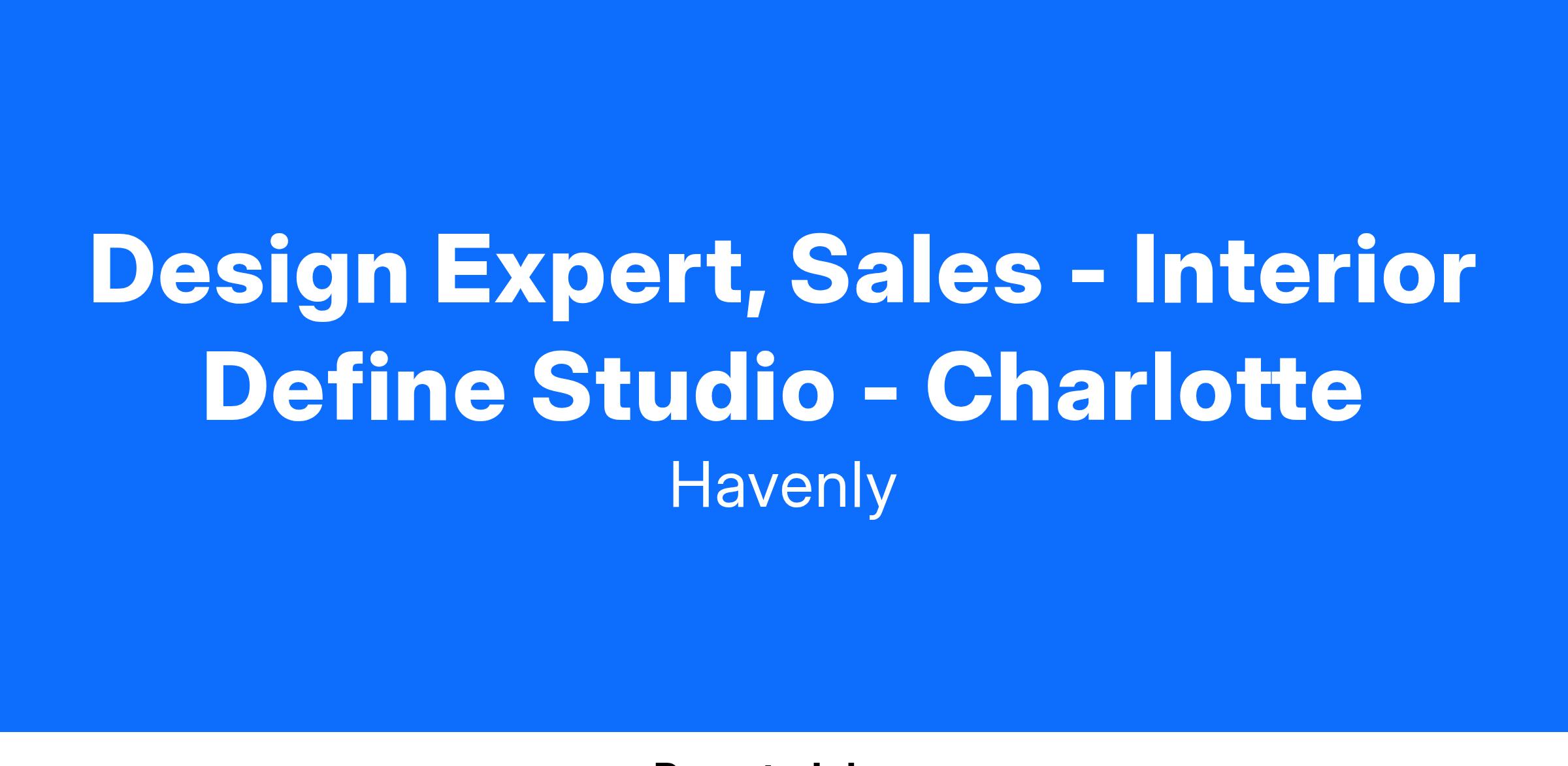We are expanding our Interior Define Studio in Charlotte, NC and seeking a sales-driven Design Expert to play a critical role in delivering a high-end, personalized customer experience while driving sales growth. If you’re passionate about interior design, thrive in a fast-paced environment, and love exceeding sales goals, this opportunity is for you!