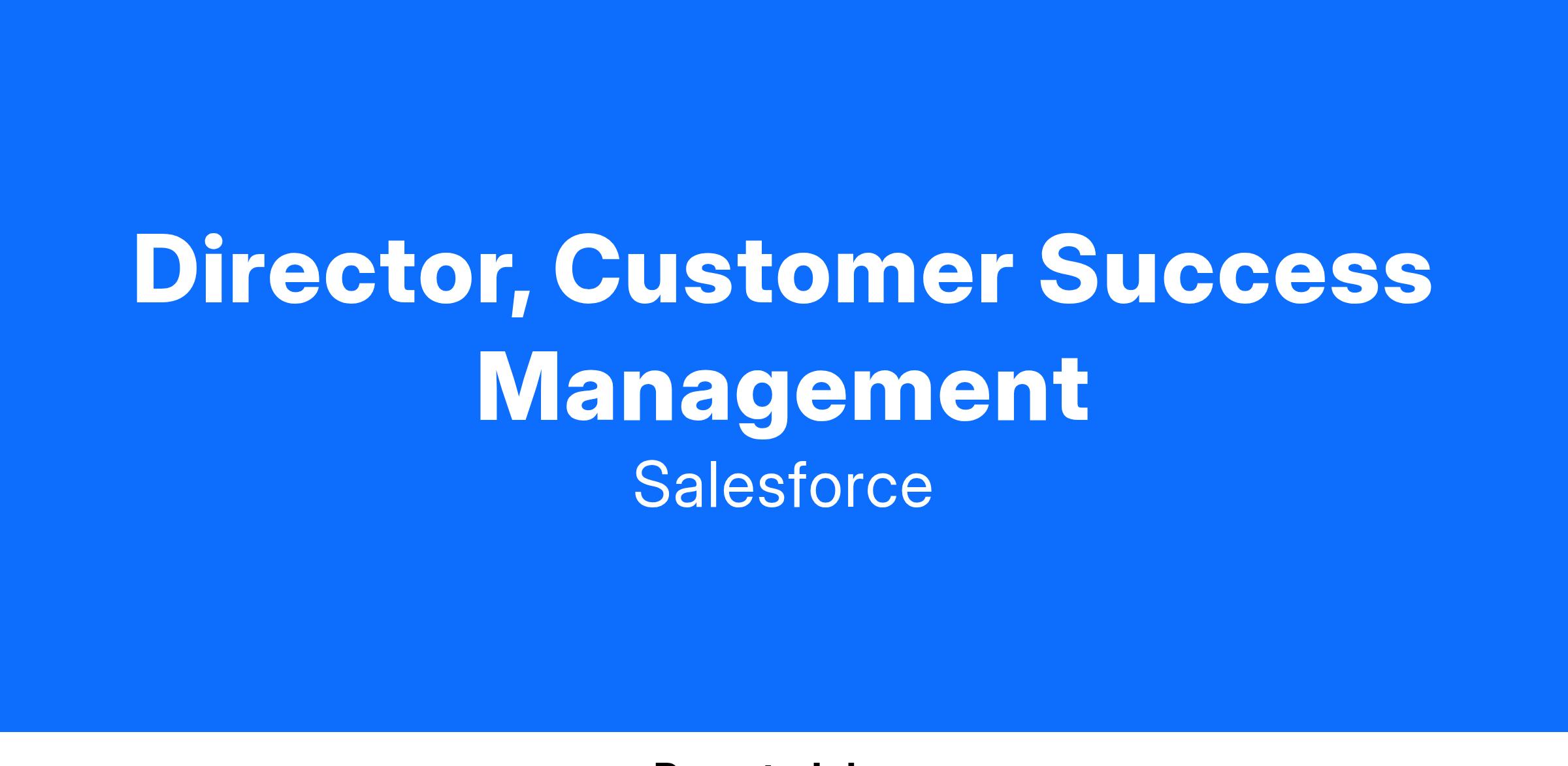 The following is a list of characteristics that make a great leader at Salesforce. We expect our next Director, Customer Success Manager to exhibit each of these characteristics: