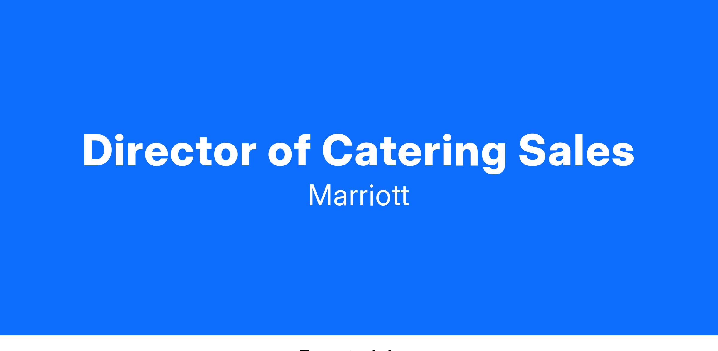 Functions as the business leader of the property’s Catering Sales Department and manages the property's reactive and proactive catering sales efforts. Shares responsibility for achieving revenue goals, guest and associate satisfaction and the financial performance of the department. Implements the brand’s service strategy and applicable brand initiatives in all aspects of the sales process. Provides day to day leadership to a team of on-property catering sales associates. Partners with key stakeholders within Area Sales to receive warms leads for more in-depth qualification of the business for the property. Partners with Event Management and hotel operations to sell products and services that the hotel has the ability to successfully execute. Verifies a seamless turnover from sales to operations and back to sales while consistently delivering a high level of service. Maintains accountability for verifying that the team maximizes revenue opportunities by up-selling and accurately forecasting (e.g., catering and group rooms) for all events.