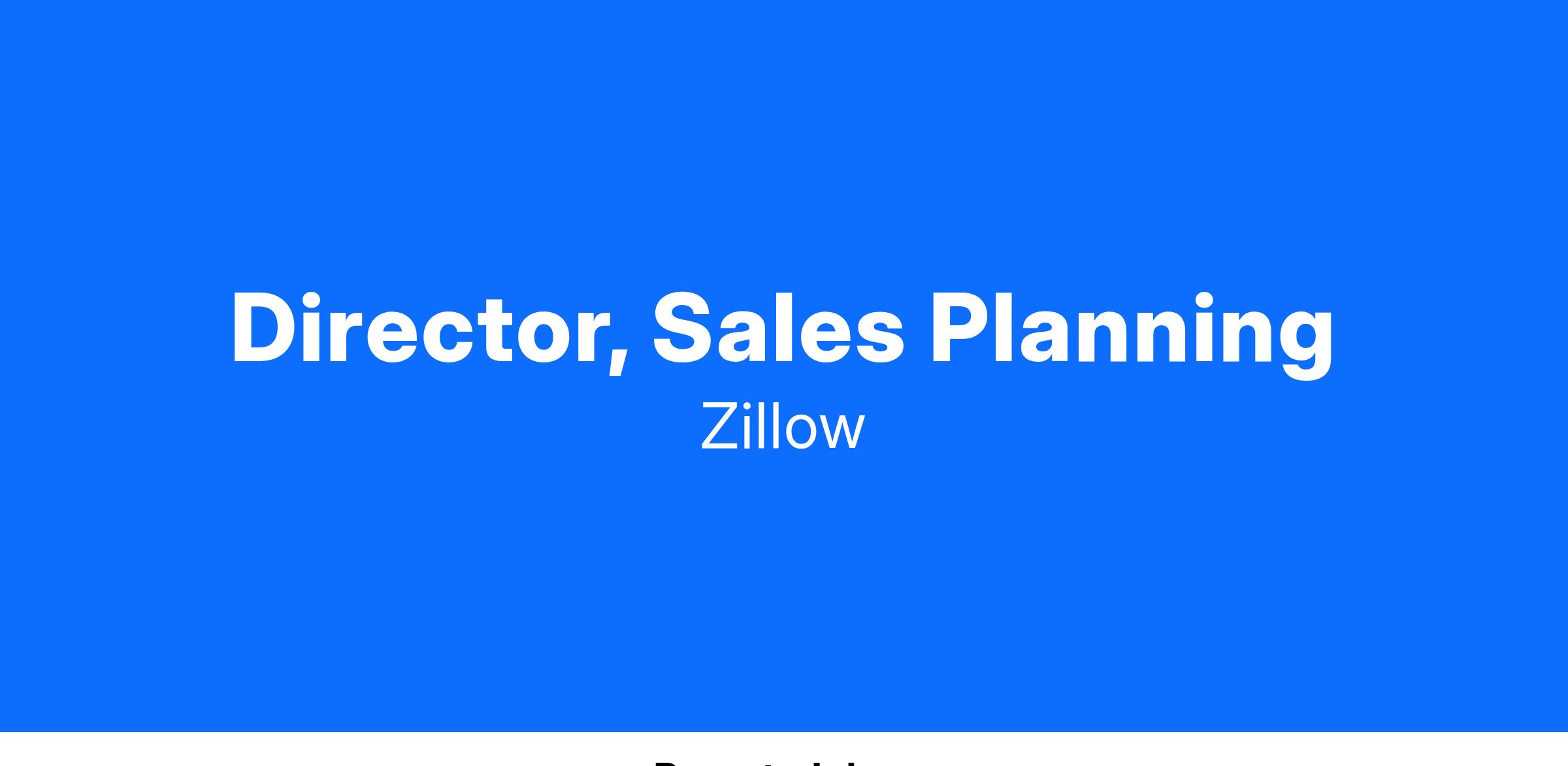 Zillow is looking for an highly analytical problem solver with expert business acumen to lead our Sales Operations - Sales Planning and Compensation team. You will steer a number of projects including sales headcount capacity planning, sales compensation strategy, sales compensation performance tracking, quota & target deployment, ROI/Cost of Sales tracking, performance management guidelines and ongoing optimization of roles driving the success of the Sales org. You will partner directly with senior sales leaders, as well as key cross-functional partners including Sales Finance (compensation shared services), FP&A, HR and Recruiting to successfully drive our vision and strategy.