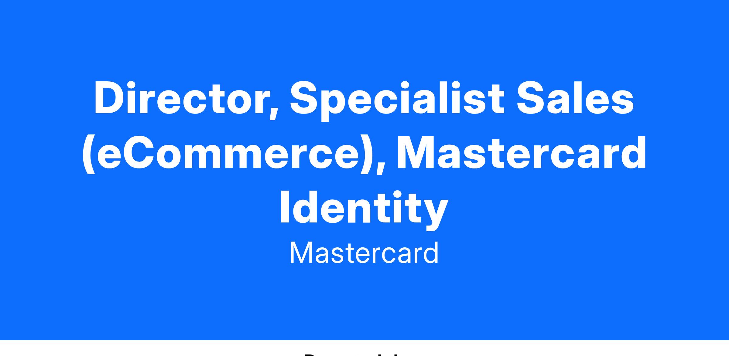 Director, Specialist Sales (eCommerce), Mastercard Identity