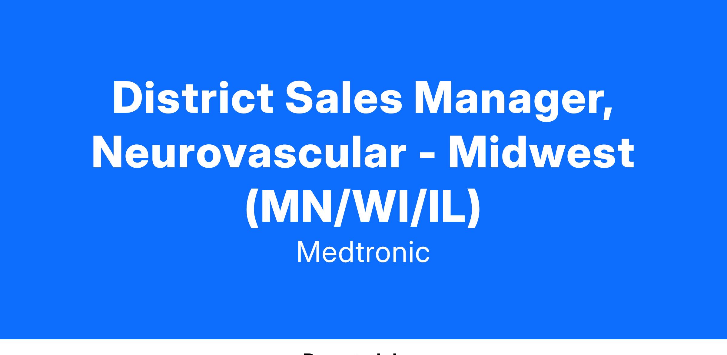 In this exciting role as a Neurovascular District Manager you will have responsibility to lead and develop Associate Territory Managers, Territory Managers, and Clinical Specialists within their assigned district and achieving Neurovascular sales objectives for that district, while representing Medtronic in accordance with Company policies and AdvaMed guidelines. District Managers hire, develop, and review sales performance with their Associate Territory Manager, Territory Managers, and Clinical Specialists in their sales territories on a regular basis. The District Manager is expected to demonstrate High Performance Practices and key District Manager competencies as they meet and exceed objectives for this role.