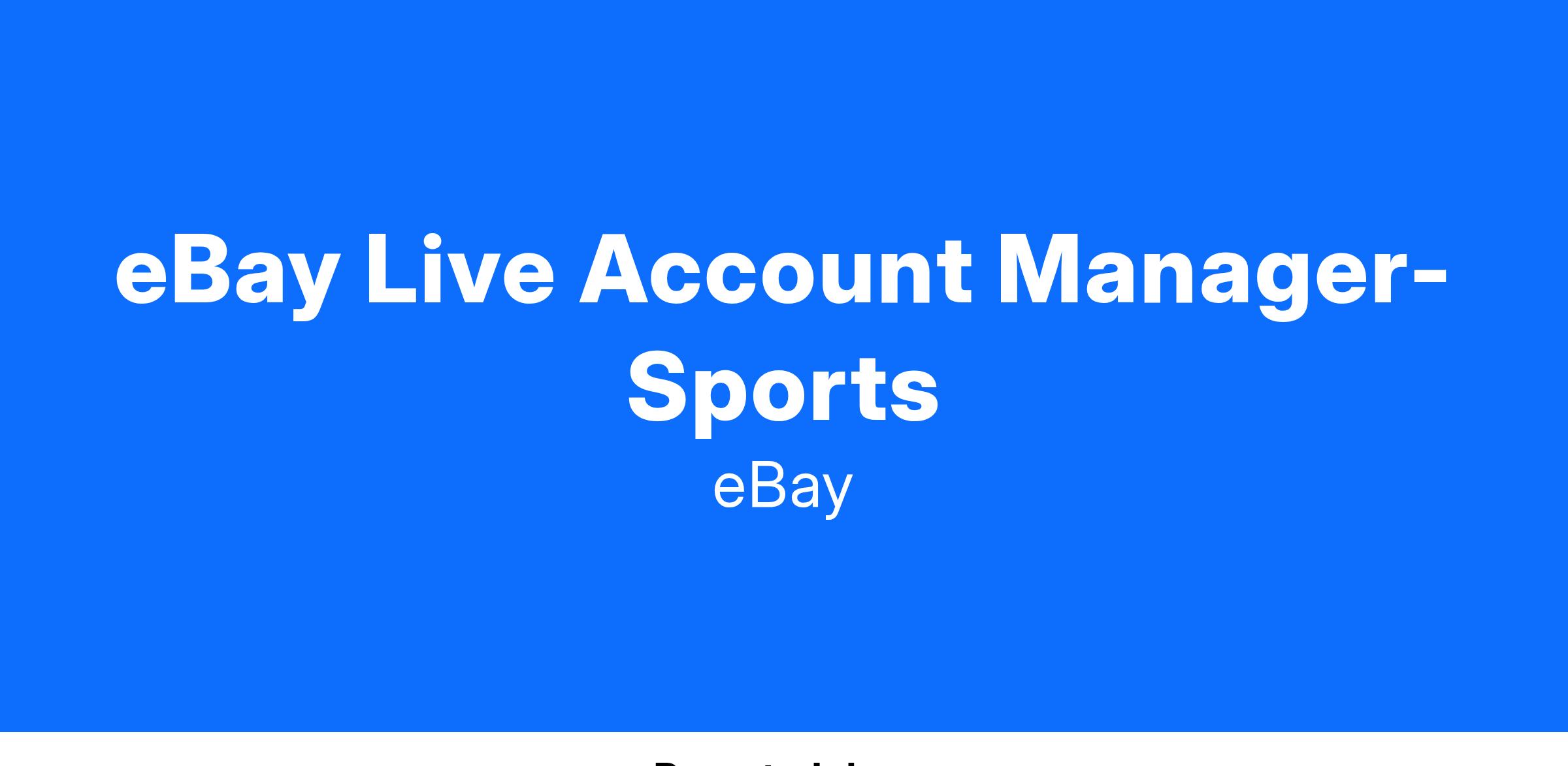 eBay Live is a new way to sell on eBay, where sellers and buyers interact live on video. We are looking for an experienced eBay Live Account Manager who can join this exciting, growing program and play a pivotal role in driving scale and success. You will work closely with our sellers to help them succeed on this new platform, and be responsible seeing new sellers through the ebay onboarding process and delivering on GMV targets that will meaningfully drive the overall eBay Live business. You will be responsible for advocating for your sellers and for understanding our product and how it needs to be changed.