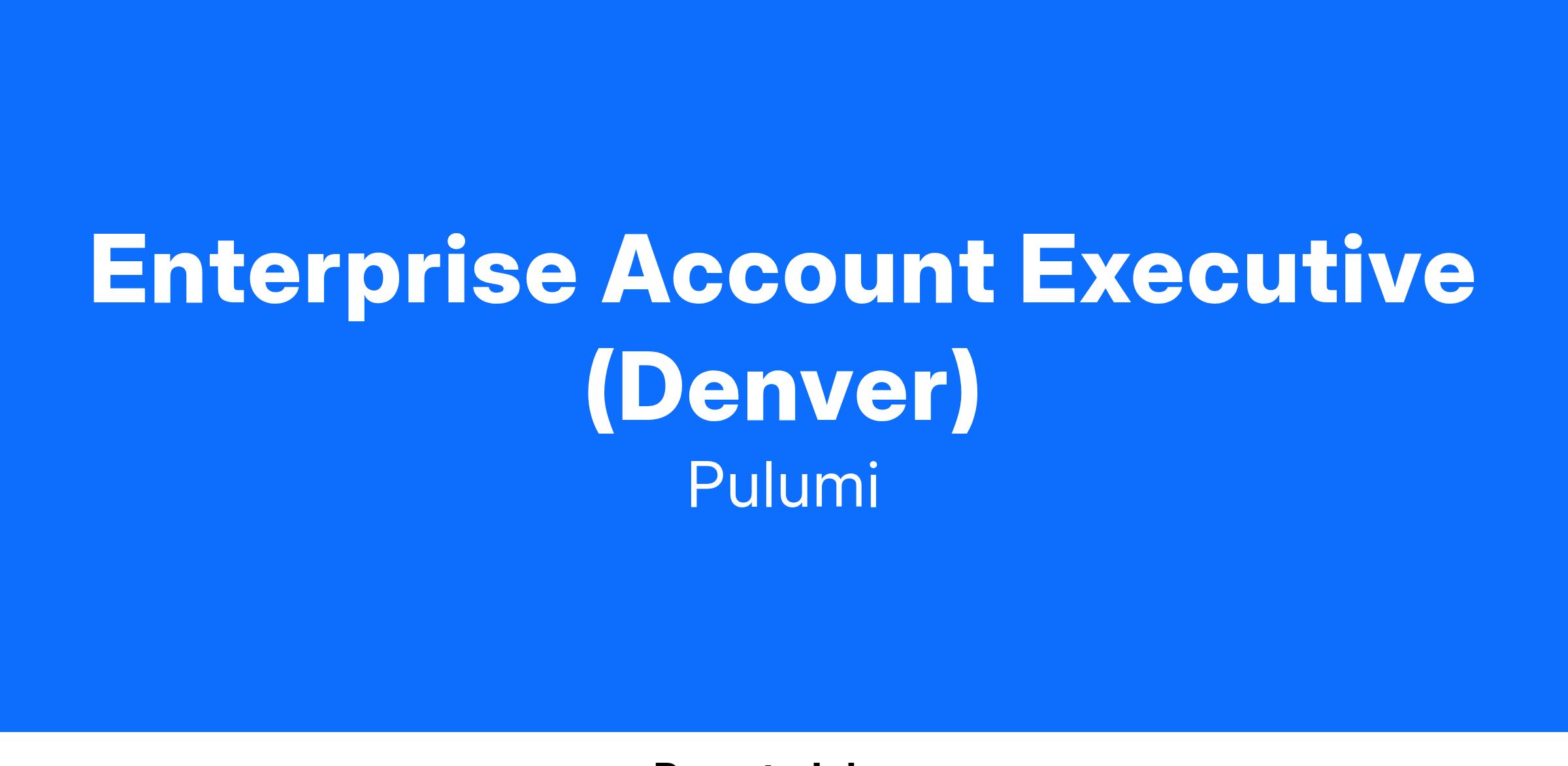 We are looking for a passionate Enterprise Account Executive to bring Pulumi’s cloud engineering products to the world. You will be a part of realizing a vision where every developer can program the cloud.