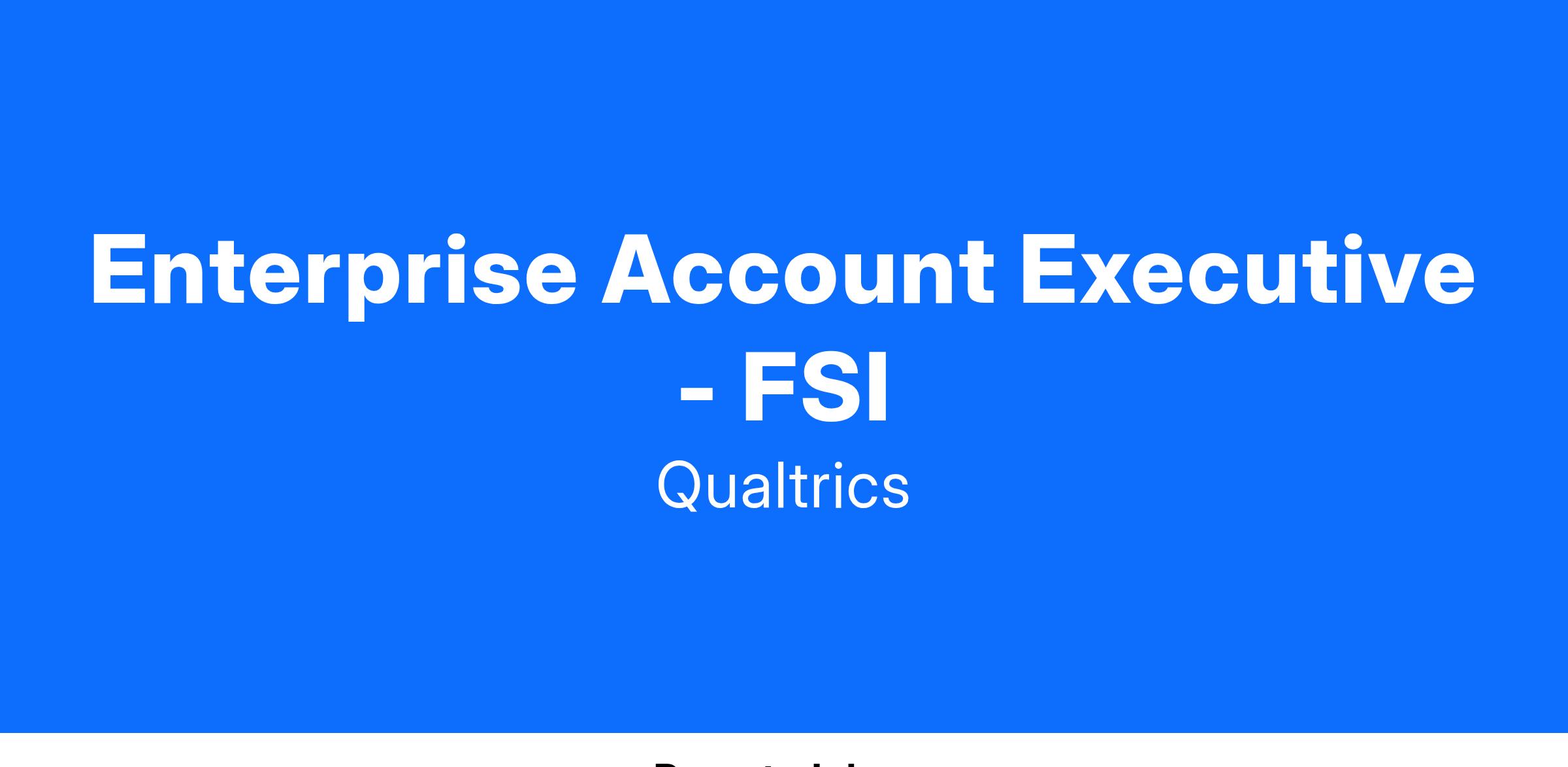 We've grown our Enterprise FSI Sales team to respond to strong client demand for the Qualtrics XM Platform. Our team is a group of highly driven individuals that are intelligent, organized, and dedicated. We work together as a team to accomplish and surpass quarterly and annual objectives. We are a goal-oriented team that works hard and enjoys the incredible trajectory that Qualtrics provides. Our overarching objective is to drive company revenue growth through client success.