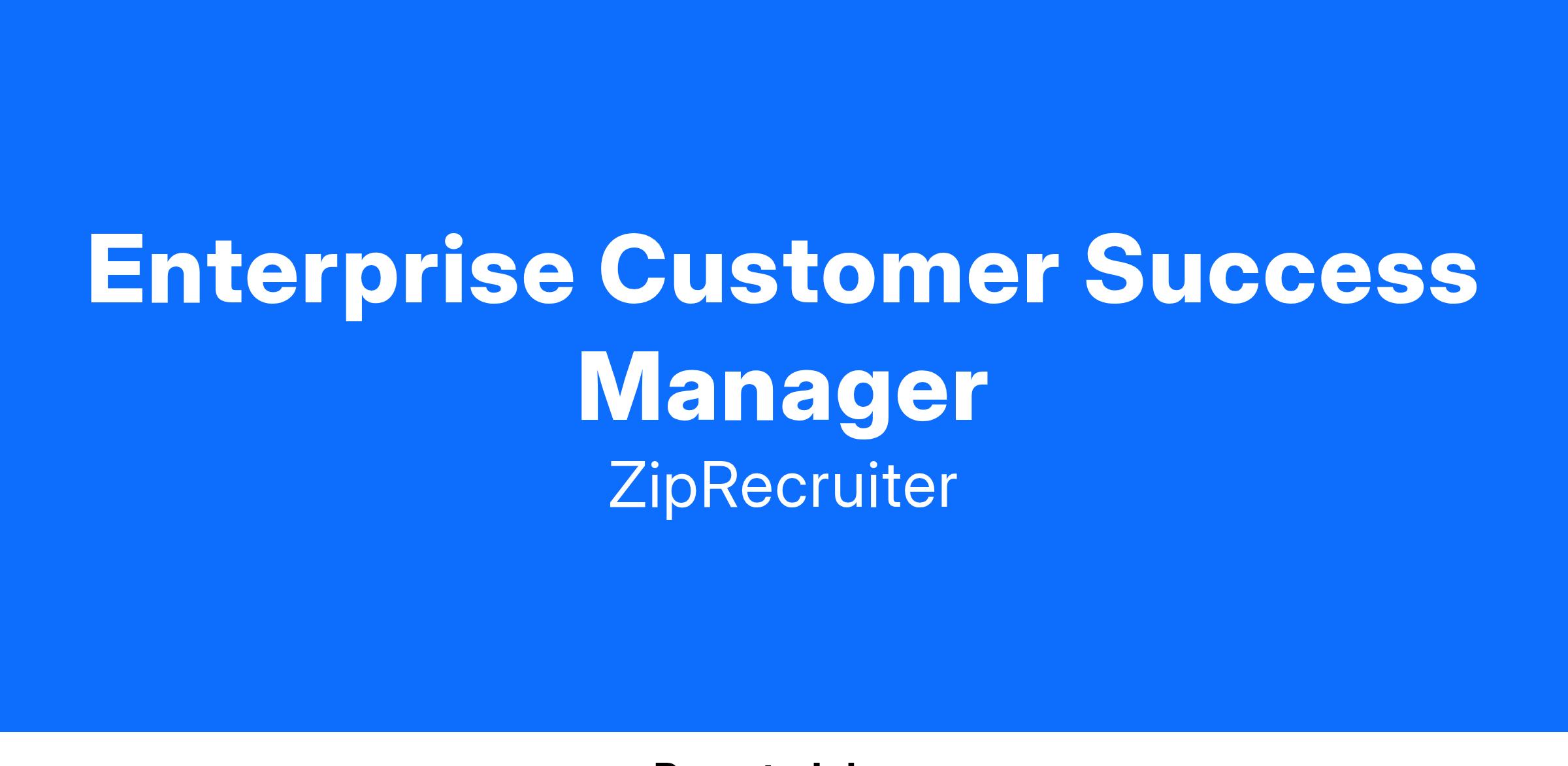 ZipRecruiter is seeking an Enterprise Customer Success Manager to support our rapidly growing Enterprise business. As the Enterprise Customer Success Manager, you will be responsible for overseeing several Enterprise client accounts. You will own effective client onboarding, implementation, training, and engagement; as well as provide meaningful strategic insights and recommendations to our clients to ensure their success on our platform. You will partner with our Enterprise Sales and Product Strategy teams to maximize client ROI, enabling long-term account growth. You will focus on relationship building, including talking directly to key decision makers at Fortune 1000 and similarly sized companies; and will strive to deliver "WOW" experiences for our customers.