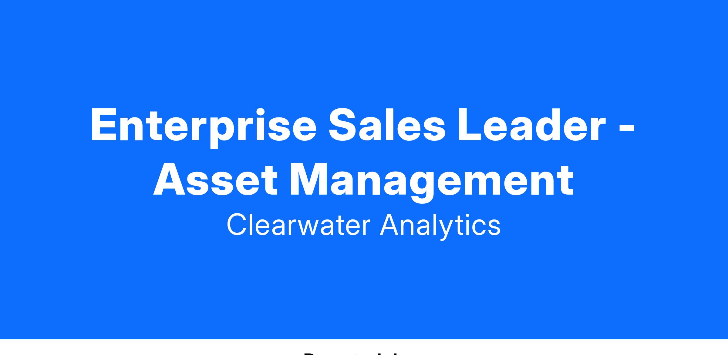 We are looking for a determined Enterprise Sales professional who can confidently articulate our value proposition to C-level individuals in the North America Asset Management market.
