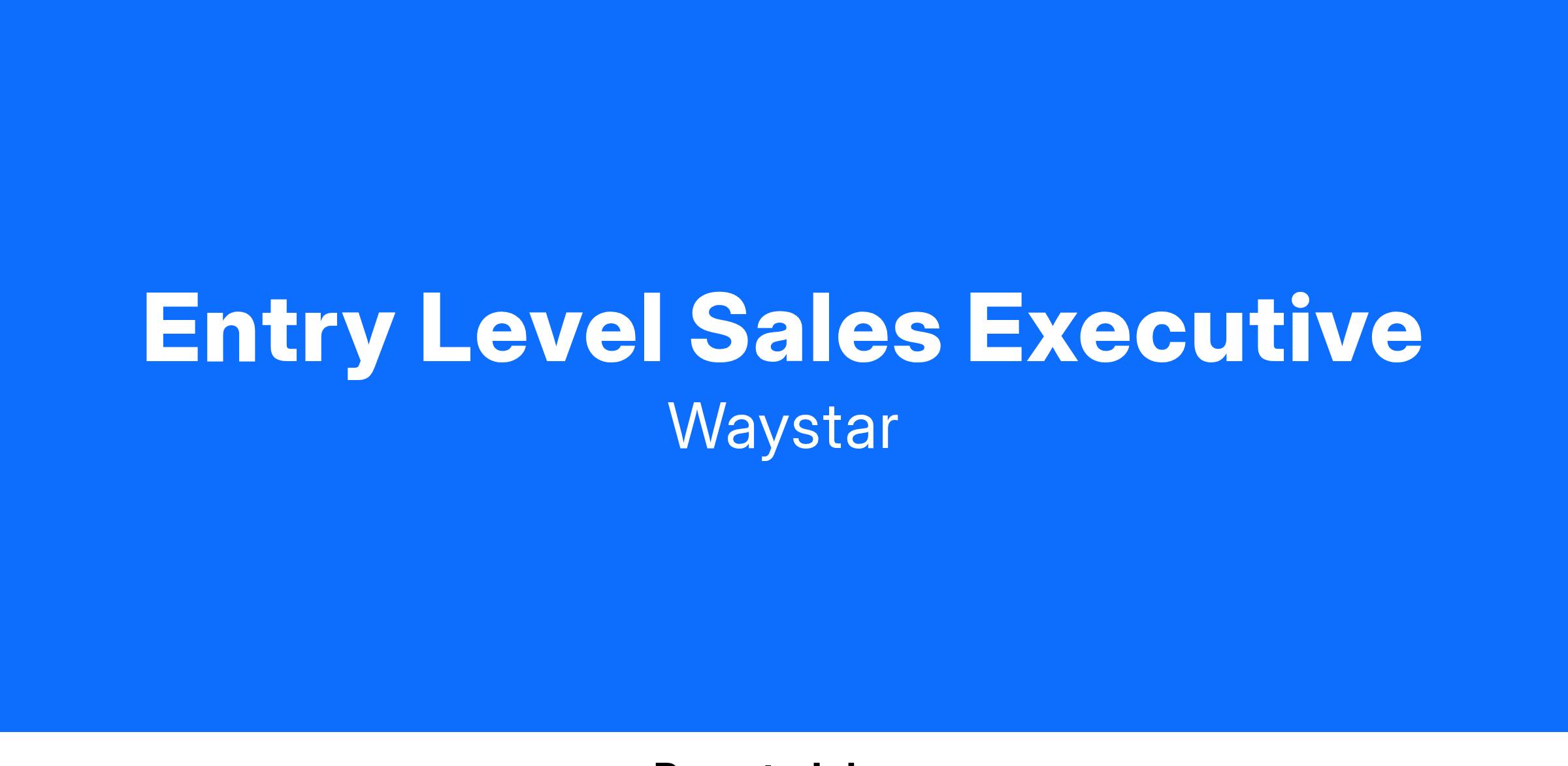 This position is designed for the successful transition in to a sales career with Waystar