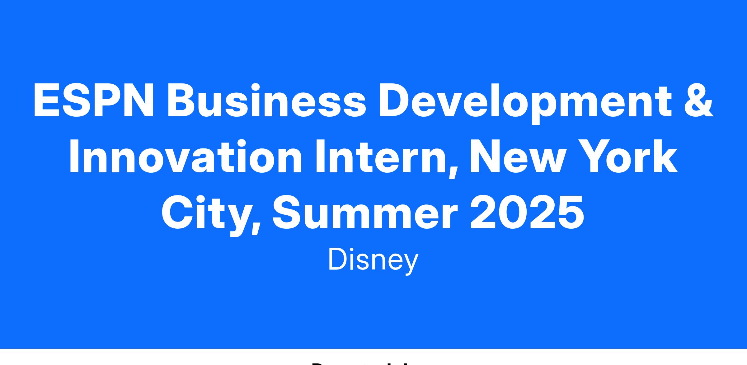 ESPN Business Development & Innovation Intern, New York City, Summer 2025Req ID: