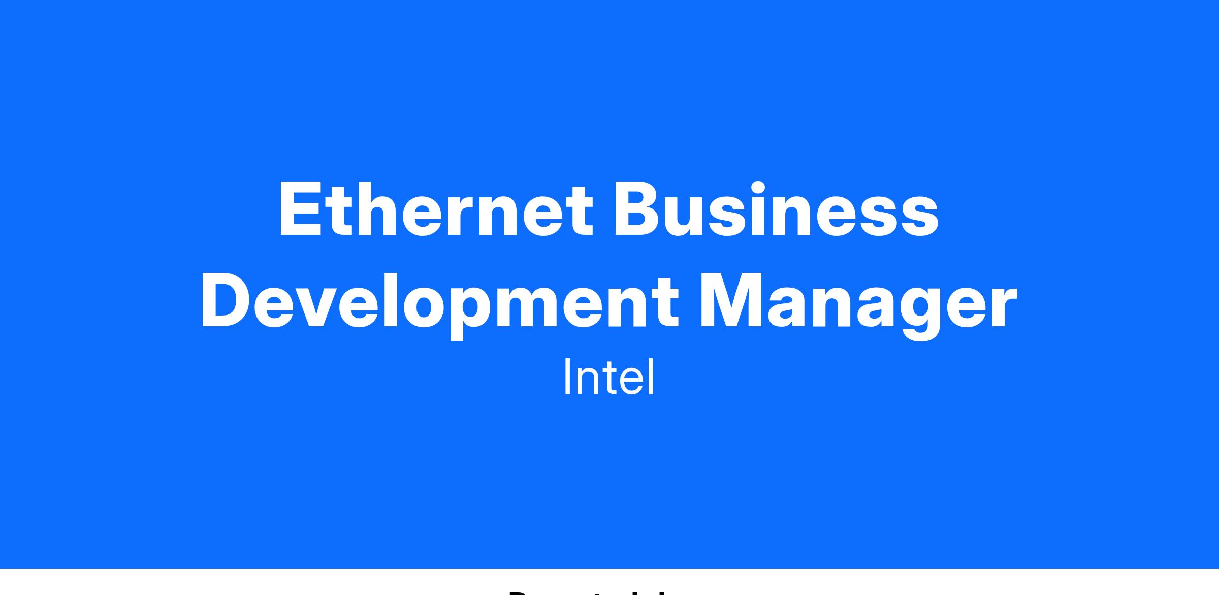 Intel's Network and Edge Group (NEX) is seeking a dynamic and experienced Ethernet Business Development Manager to join our team.