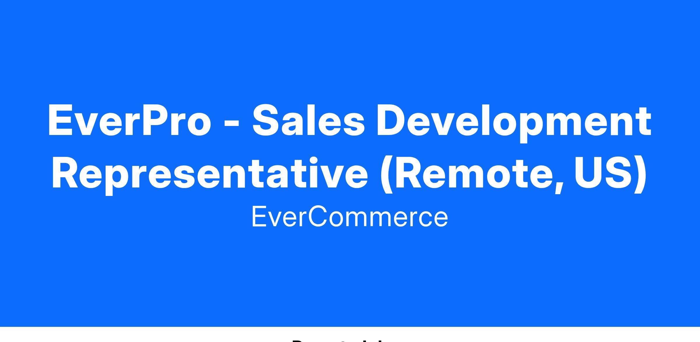 We are building an extraordinary company and looking for talented, energetic, and motivated people to join our team. You can learn more about our Company, Culture and Values here: https://careers.evercommerce.com/us/en