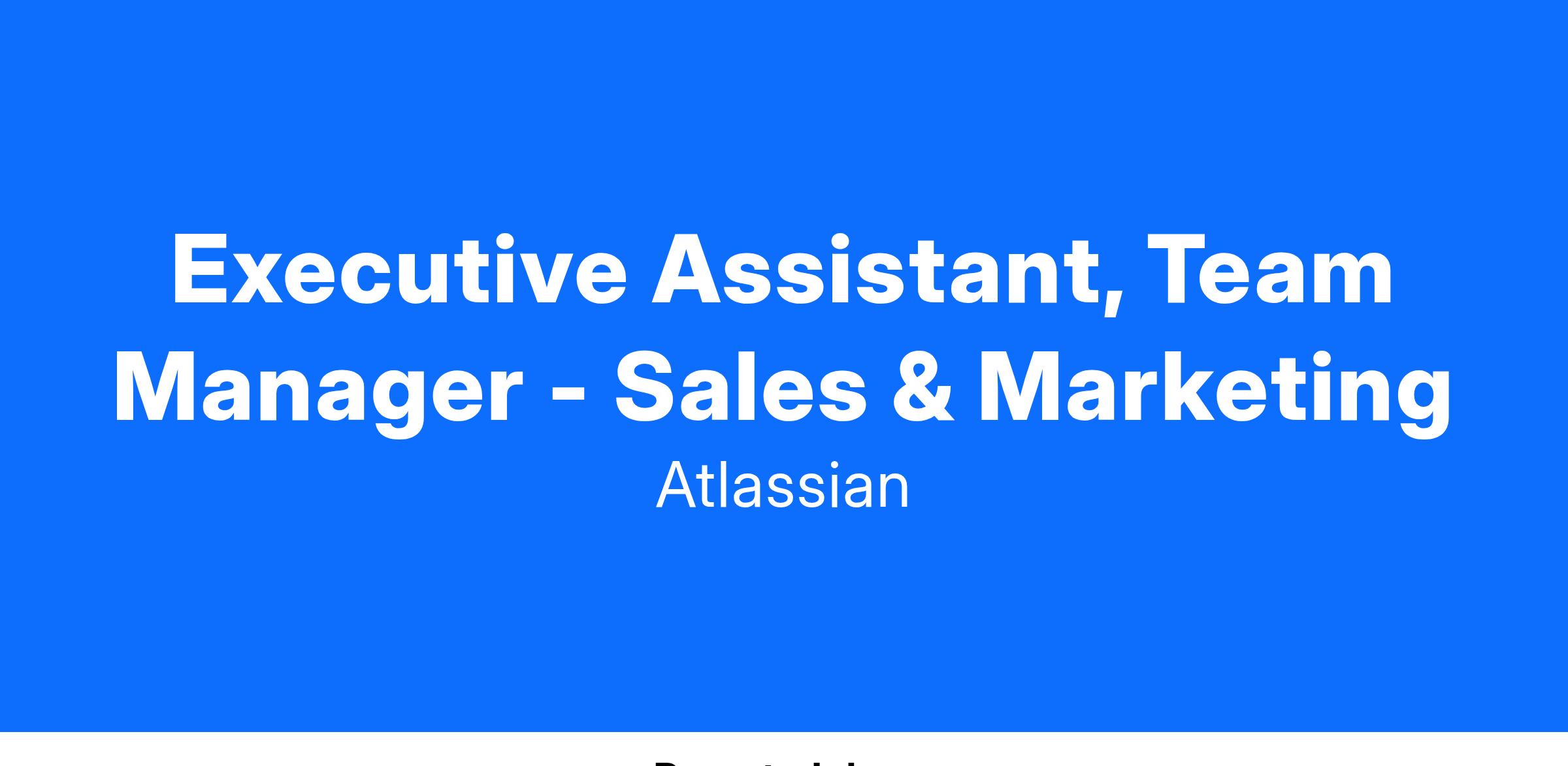 Join us. We're hiring an Executive Assistant Team Manager. You are an experienced senior-level Executive Assistant and people manager, with a background in supporting leaders at scale, and a deep understanding of craft excellence and talent management. As a Team Manager, youβll lead talent management and development for a team of Executive and Administrative Assistants, aligning with Atlassianβs Sales & Marketing Leadership to raise the bar on craft. Youβll also have the opportunity to flex your deep EA skills, stepping in to support leaders as needed on a short term basis. You'll report into our centralized Leadership Operations team.