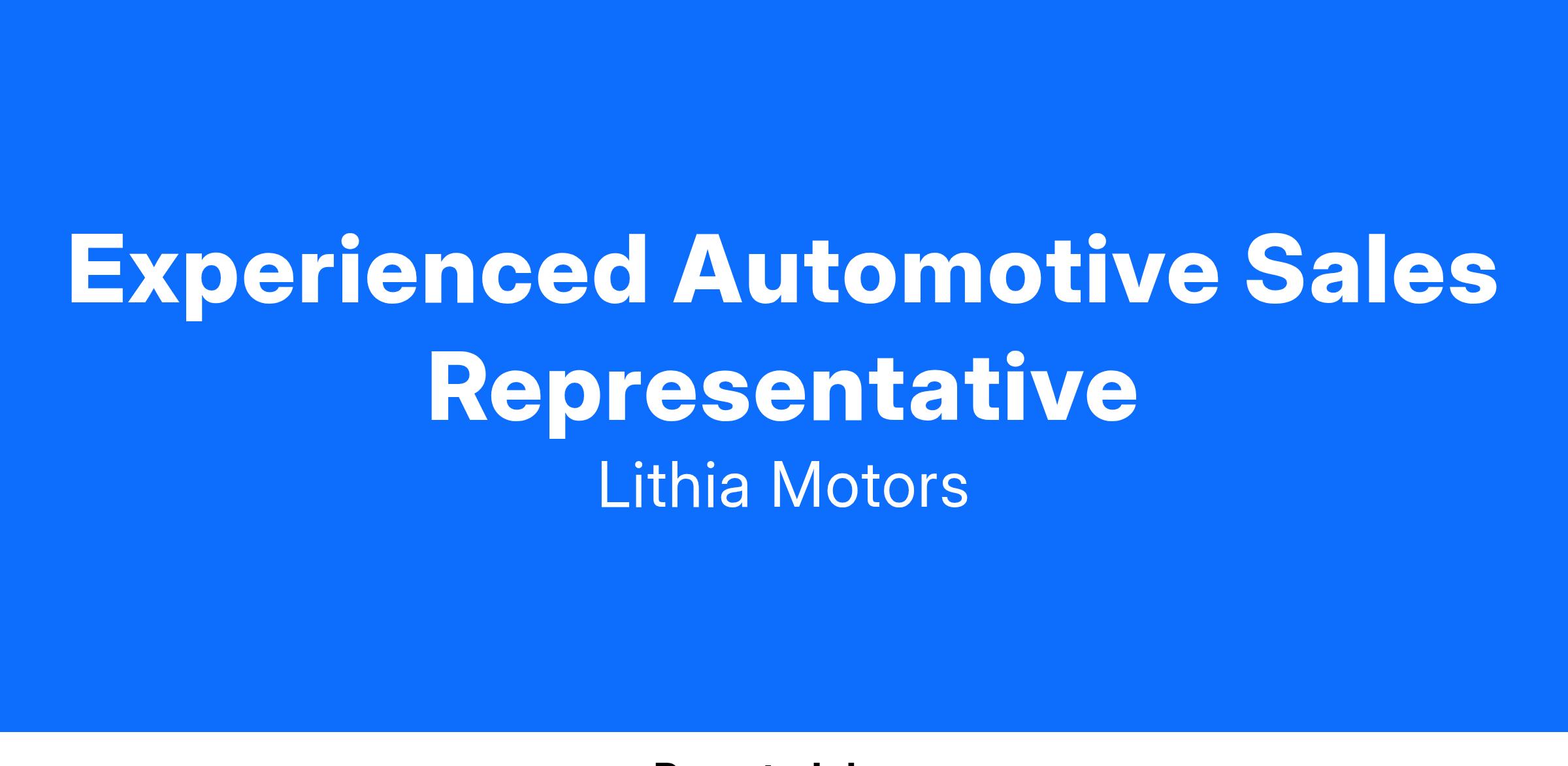 We are dedicated to delivering honest value, earning customers for life, taking personal ownership, improving constantly and having fun! If you share these goals, we want to talk to you! Come be a part of the Automotive Industry future with the Lithia Motors family, a Fortune 500 company with over 300 dealerships nationwide! Being one of the largest dealership groups in America, there are many opportunities for you to pursue your short and long-term career goals.