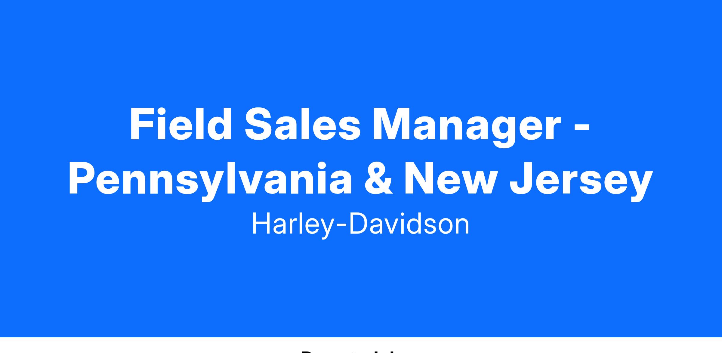 Title: Field Sales Manager - Pennsylvania & New Jersey