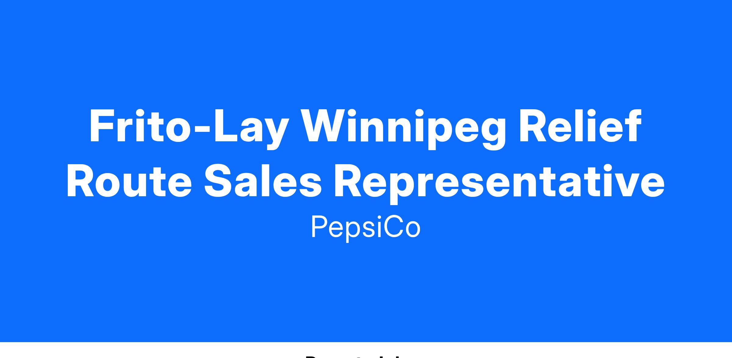 Frito-Lay Winnipeg Relief Route Sales Representative