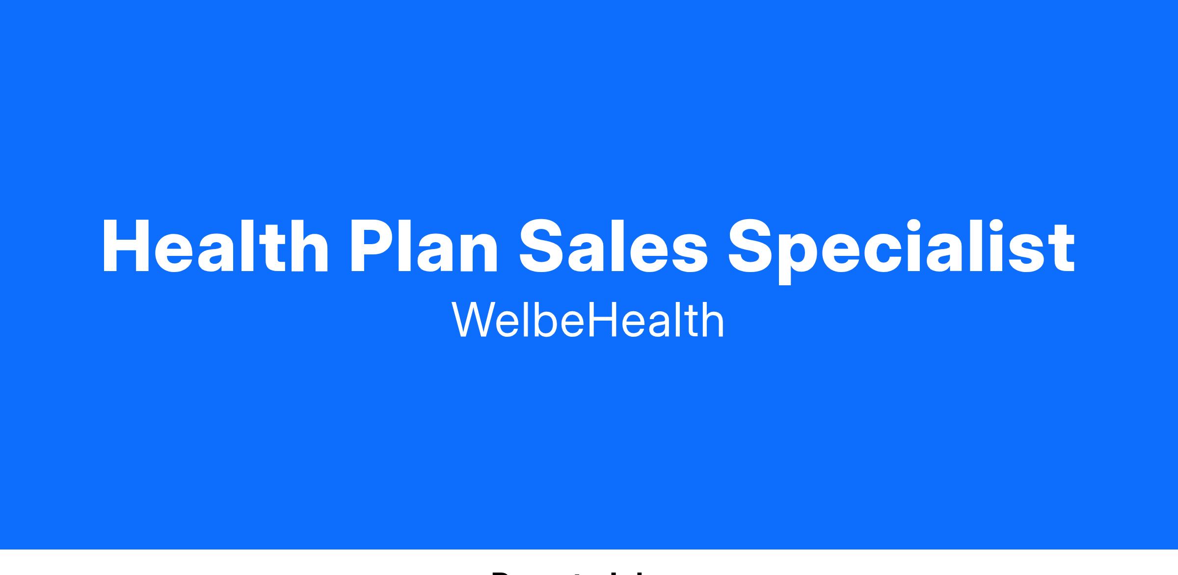 Benefits of Working at WelbeHealth: Apply your sales expertise in new ways as we rapidly expand. You will have the opportunity to design the way we work in the context of an encouraging and loving environment where every person feels uniquely cared for.