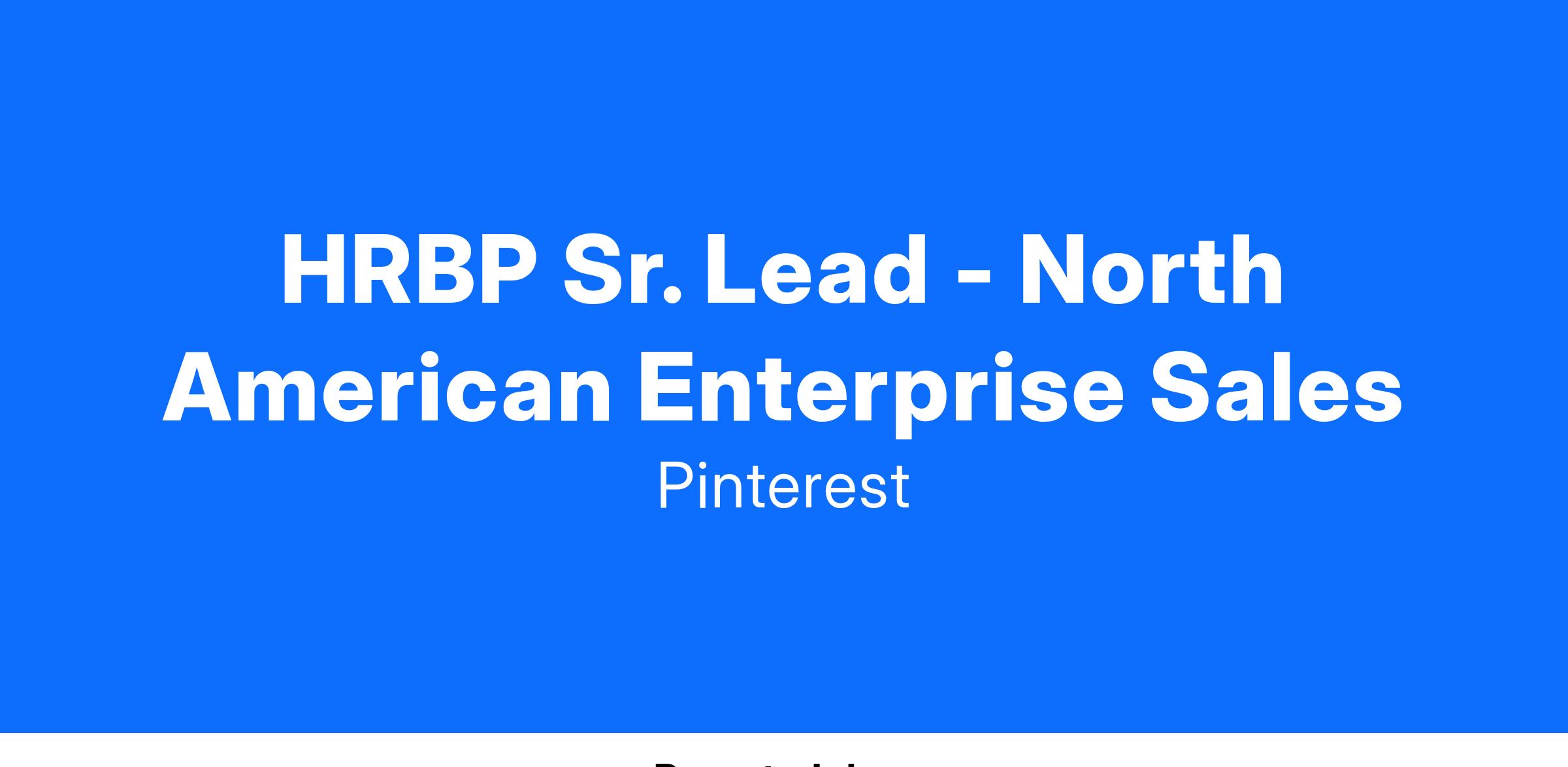 The HRBP Sr. Lead is a strategic role that focuses on aligning HR strategies with business objectives to drive organizational success. This position partners closely with an executive team member and senior leadership to develop and implement People strategies and plans that support Pinterest's goals. As a key HR contributor within the organization, the Sr Lead, HRBP is responsible for overseeing critical initiatives and projects at the functional level and providing project leadership for cross-functional and company-wide efforts. The individual in this role plays a pivotal part in supporting alignment with People team Centers of Excellence and contributing to functional priorities, work plans, and long-term strategies.