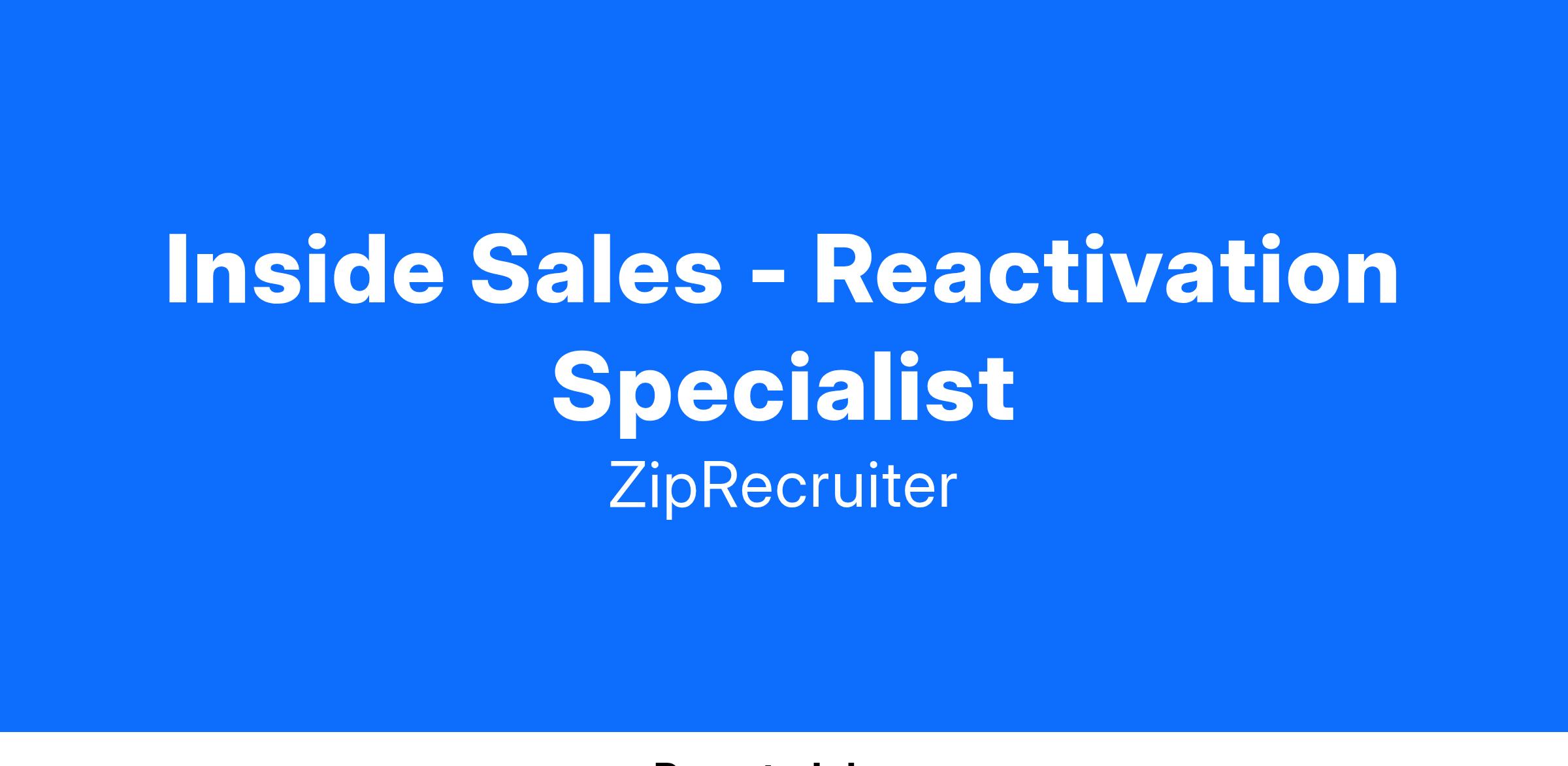 At ZipRecruiter, we're committed to helping our customers achieve success in their recruitment efforts. We've purposefully transitioned to a Customer Success vs Customer Support focus. Any veteran support rep will attest to the added value reactive support can have on the success of the customer experience. We've taken that a step further by creating this specialized role wherein we focus on the retention of our customers by addressing any and all concerns and working alongside the customer to solve them. The Reactivation Specialist will be responsible for contacting accounts that have canceled their daily job advertisements. Their primary role will be to engage and prospect decision makers to re-open former paying Usage accounts.