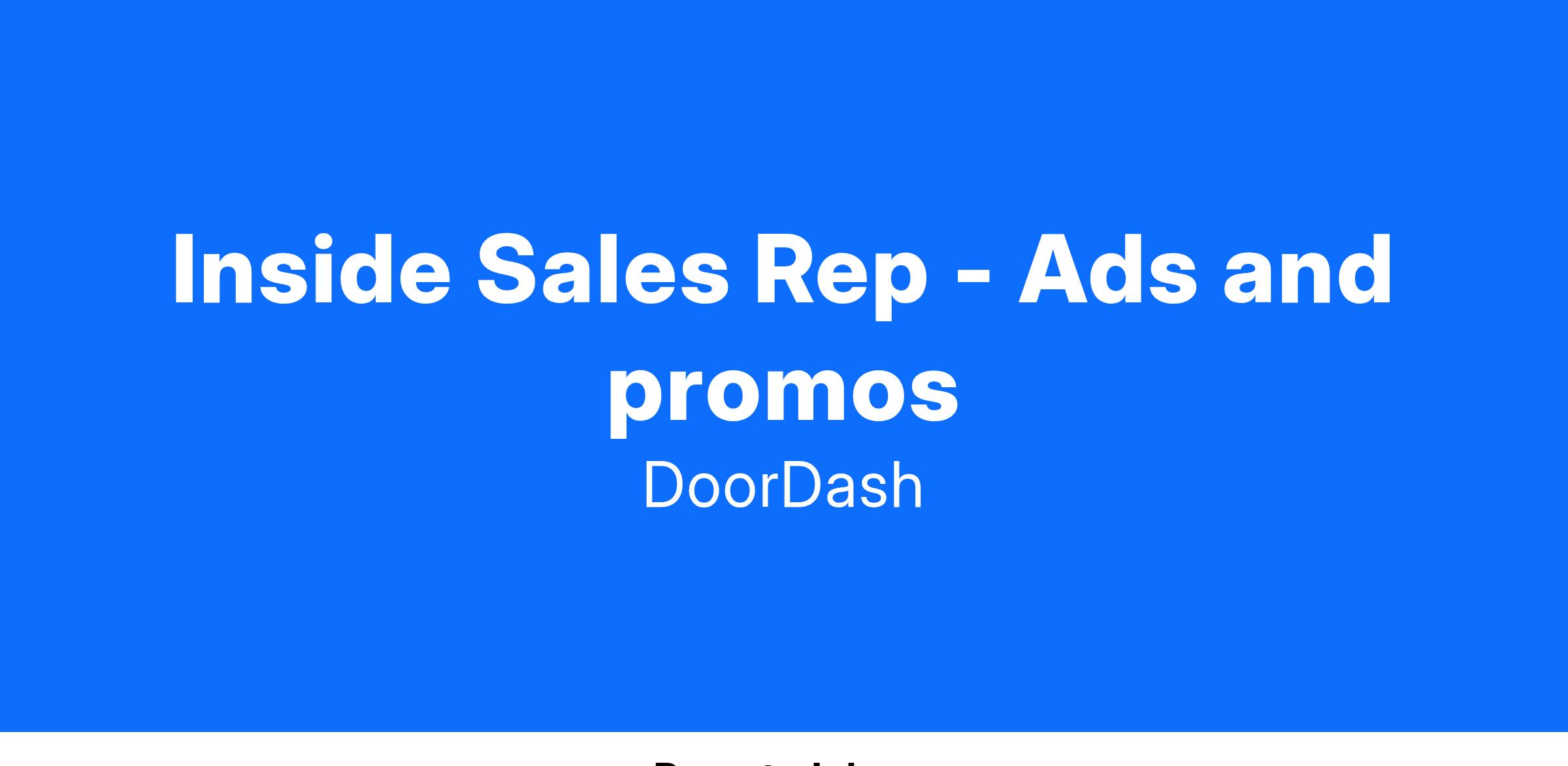 We’re looking for a motivated Growth Executive who will be focused on securing revenue growth for both our existing merchants and DoorDash. This Growth Executive will work to upsell incremental products and services to our existing merchants to help their businesses accelerate to new levels. In particular, Ads, Loyalty & Promotions. Reporting to one of our Inside Sales Managers, you will play an integral part in promoting DoorDash Ads, Loyalty & Promos through high-volume phone calls and emails.