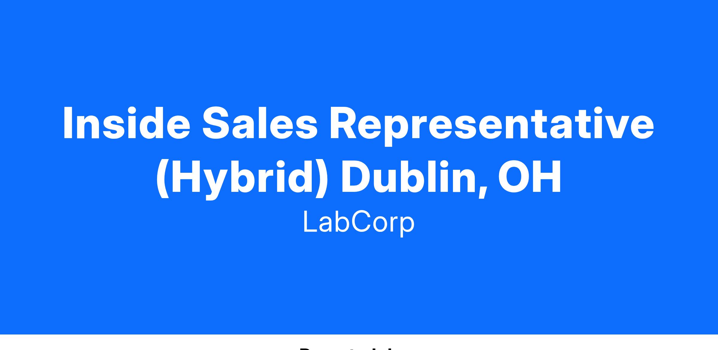 Recognized as one of Forbes’ 2022 “World’s Best Employers” and named to the Disability Equality Index’s 2022 list of “Best Places to Work for Disability Inclusion” Labcorp is seeking to hire an Inside Sales Representative to help manage relationships that increase loyalty and accessioning volume across an assigned territory of existing small to medium sized clients.