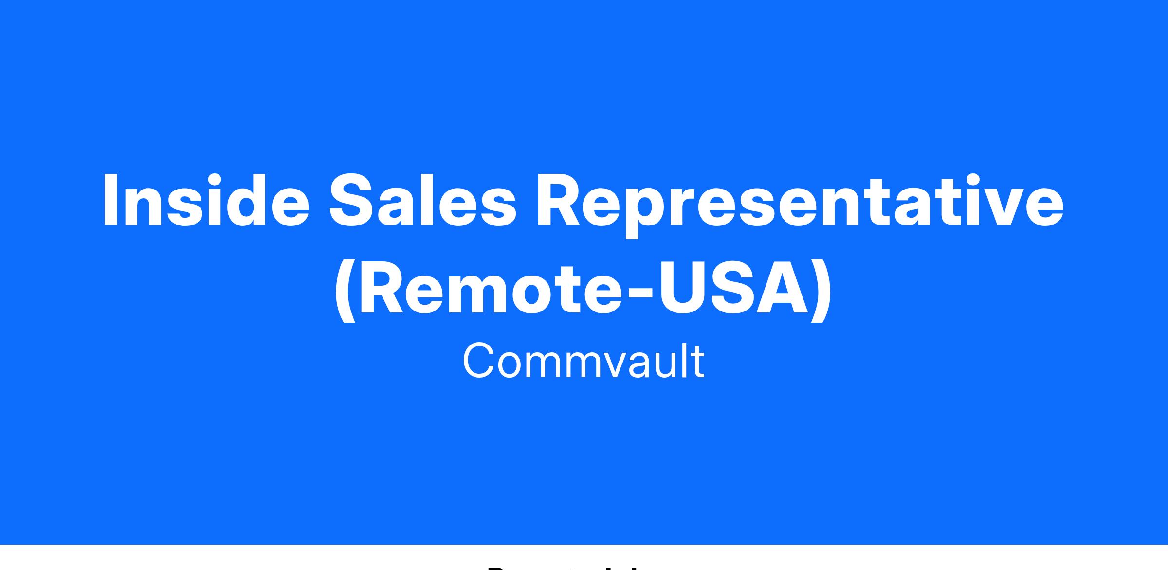 You will work closely with our ISR manager and fellow sales professionals to develop leads, create quotes, and sell our cyber resilience platform and services to both new and existing customers. Must have the ability to articulate an in-depth discussion, starting from understanding the end user’s environment, current challenges/goals, and align with Commvault SW/SaaS solutions to those challenges/goals including a financial and strategic value proposition.