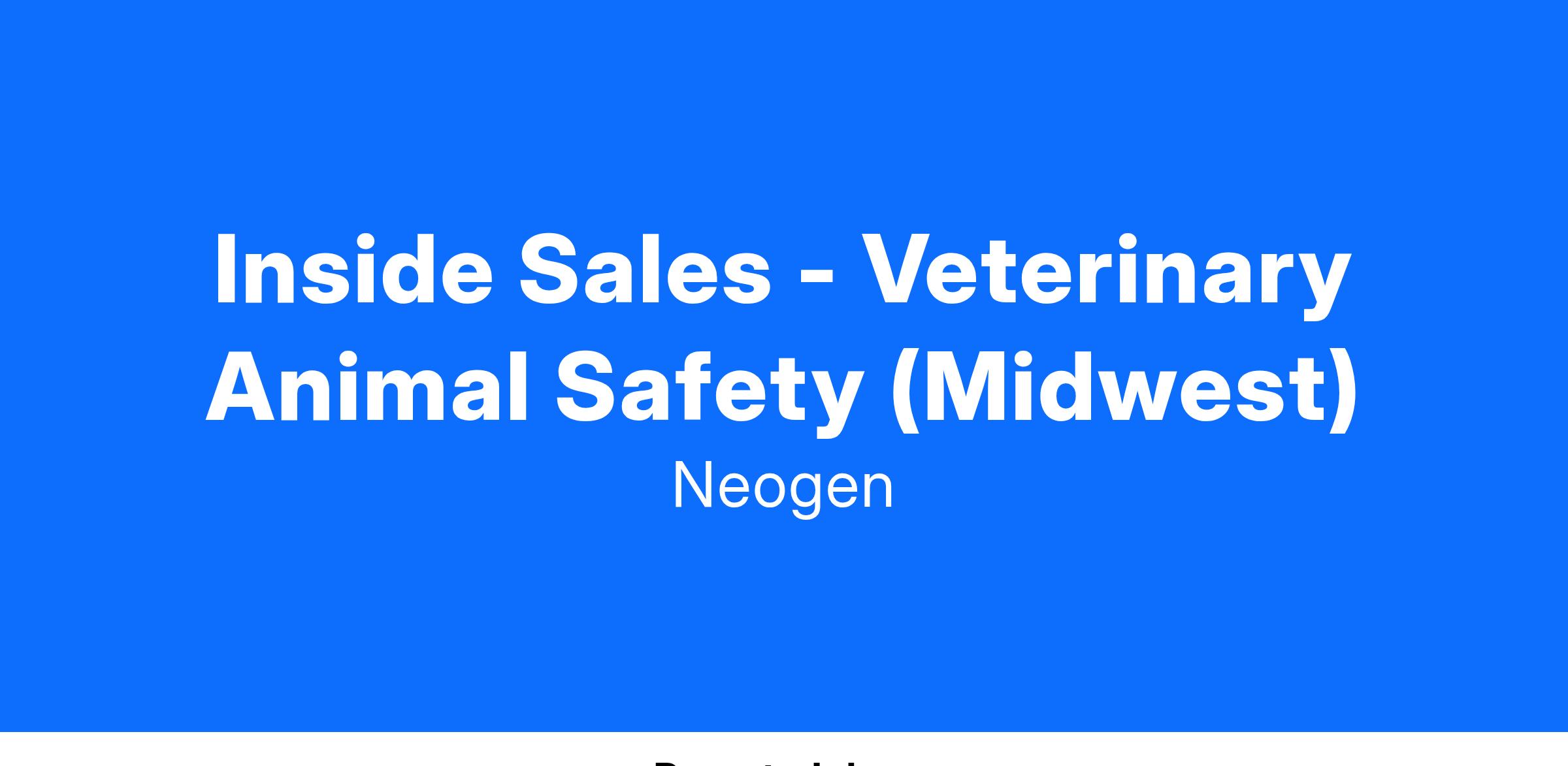 Promotes use of and sells all Neogen animal safety products and services to equine, small animal, large animal and mixed practitioners, universities and diagnostic laboratories. Supports distribution channel to encourage product destruction. The ideal candidate will be located in the Midwest