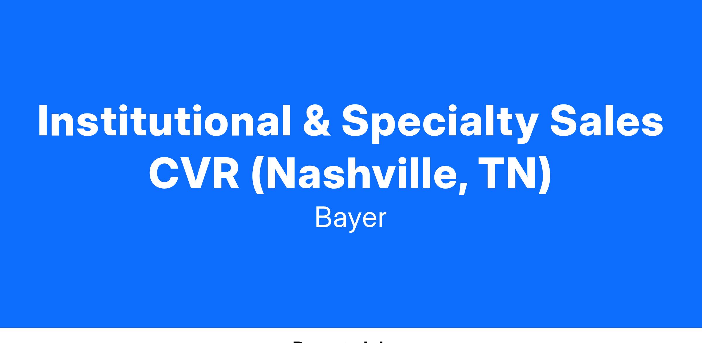 Bayer is expanding to further deepen their mission Health for All, Hunger for None. The Institutional and Specialty Sales (ISS) team is being established to lead and drive launch activities for the CVR portfolio with specific focus on the anticipated Kerendia Heart Failure (HF) indication. Responsibilities include driving demand, clinical education and sales by developing, coordinating, and implementing a strategic business plan for top priority Institutions (i.e., Hospitals and Health Systems), Cardiologists and Nephrologists both in the Institutional and Community settings. The ISS reports to the CVR Area General Manager (AGM) and will be an integral part of the Area Customer Squad, collaborating closely with Marketing, Market Access, Patient Services, and other internal partners, as appropriate, to drive the US Pharma outcomes. This role is residence based position based in Greater Nashville, Tennessee.