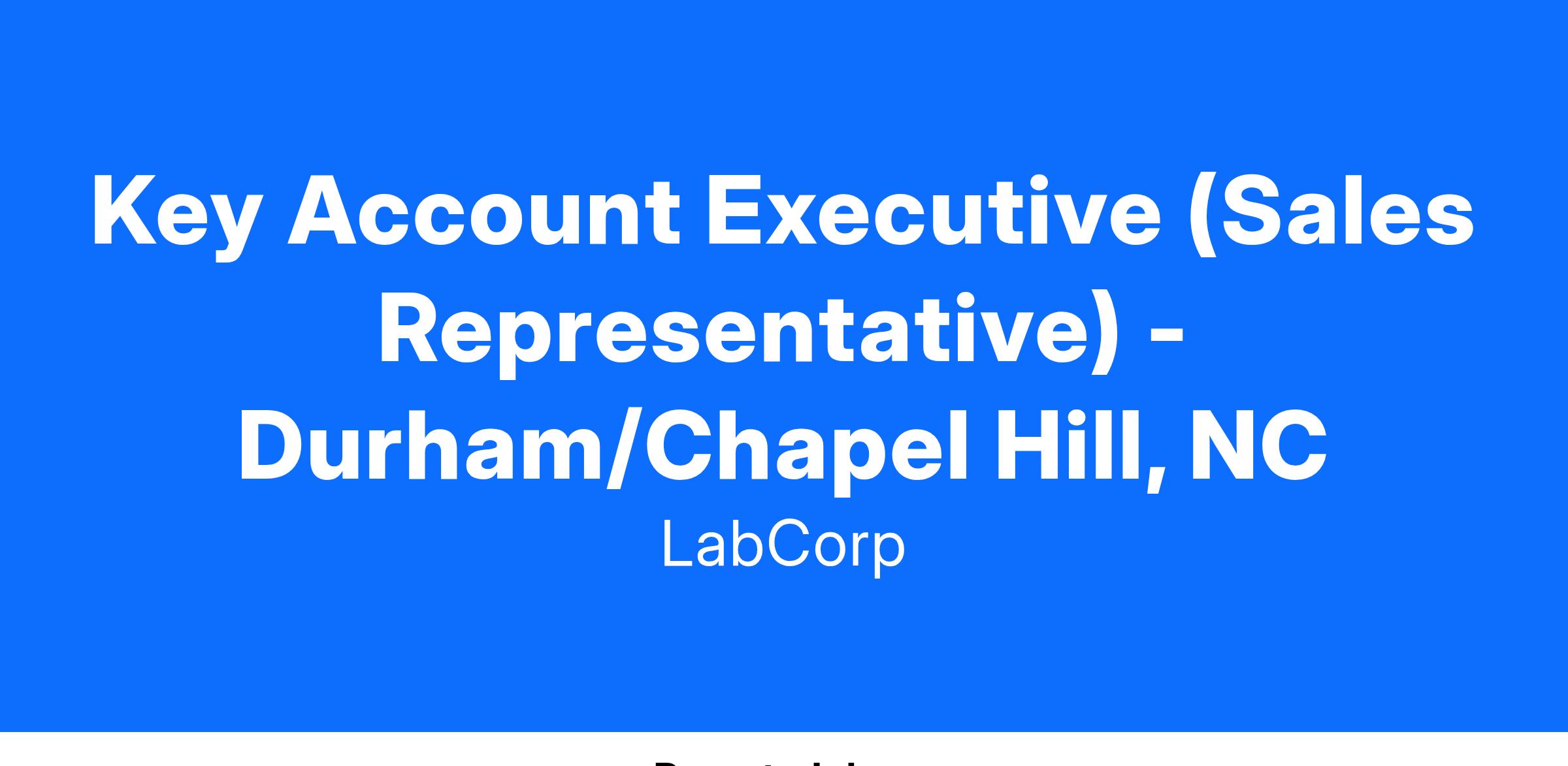 Do you have entry level sales experience and are looking to join an organization where you can build a career? Are you inspired by the opportunity to bring your talents to our diverse community and challenge the health care industry status quo with innovative testing that puts people first? If so, Labcorp has an exciting opportunity for a Key Account Executive (Sales Representative). The territory for this position will cover the Triad Region of North Carolina (Burlington, NC and surrounding communities). The Ideal candidate will reside within the territory.