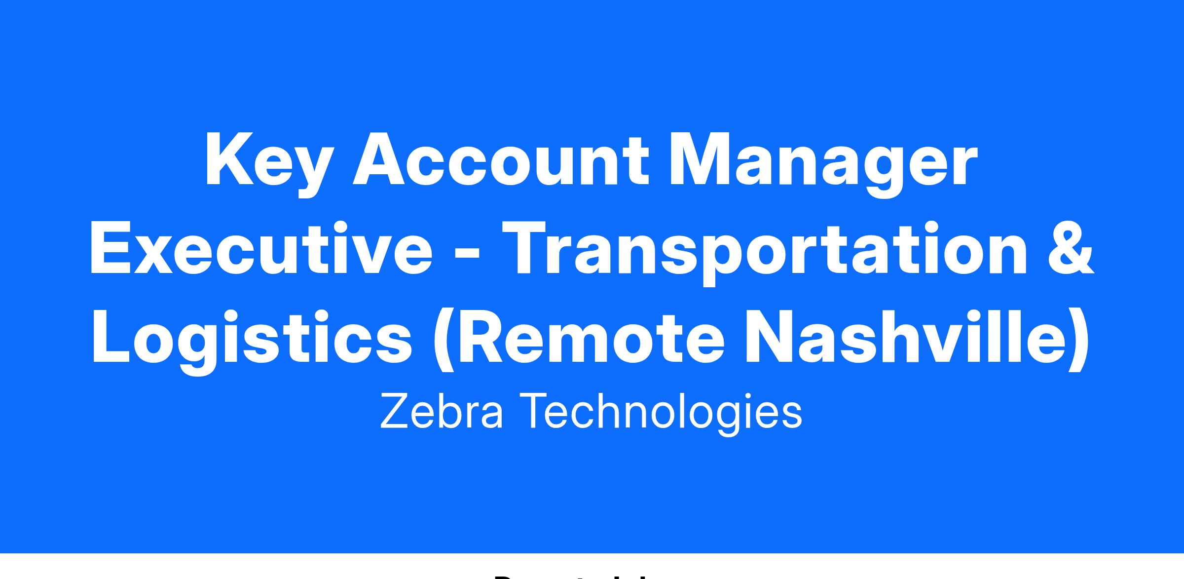 Takes ownership of assigned end-user account(s) or territory for one of Zebra's strategic key accounts in the T&L (Transportation & Logistics) vertical; develops and executes sales strategy for assigned account(s) or territory with manager's input; develops strong relationships with key customer contacts and leverages to Zebra's advantage; creates and delivers high impact sales presentations and capable of product training; often used for those with strong technical background but limited sales experience or strong sales with limited product/market understanding. Develops and executes sales strategies with minimal input from manager for a higher level of financial responsibility; proactively sells solutions encompassing a wide range of products or services; as required leverages relationships with other business units and/or external partners to deliver solution; Develops strong relationships with key decision makers and influencers; Initiates and leads customer presentations and value proposition creation. Generally reserved for top 10% most senior sales talent with greatest responsibilities; leads business planning, including participation in quota setting and defining overall sales strategy; anticipates customer needs and works to define innovative solutions; develops strong relationships with corporate-level executives and industry influencers; leads creation of innovative solutions for others to sell.