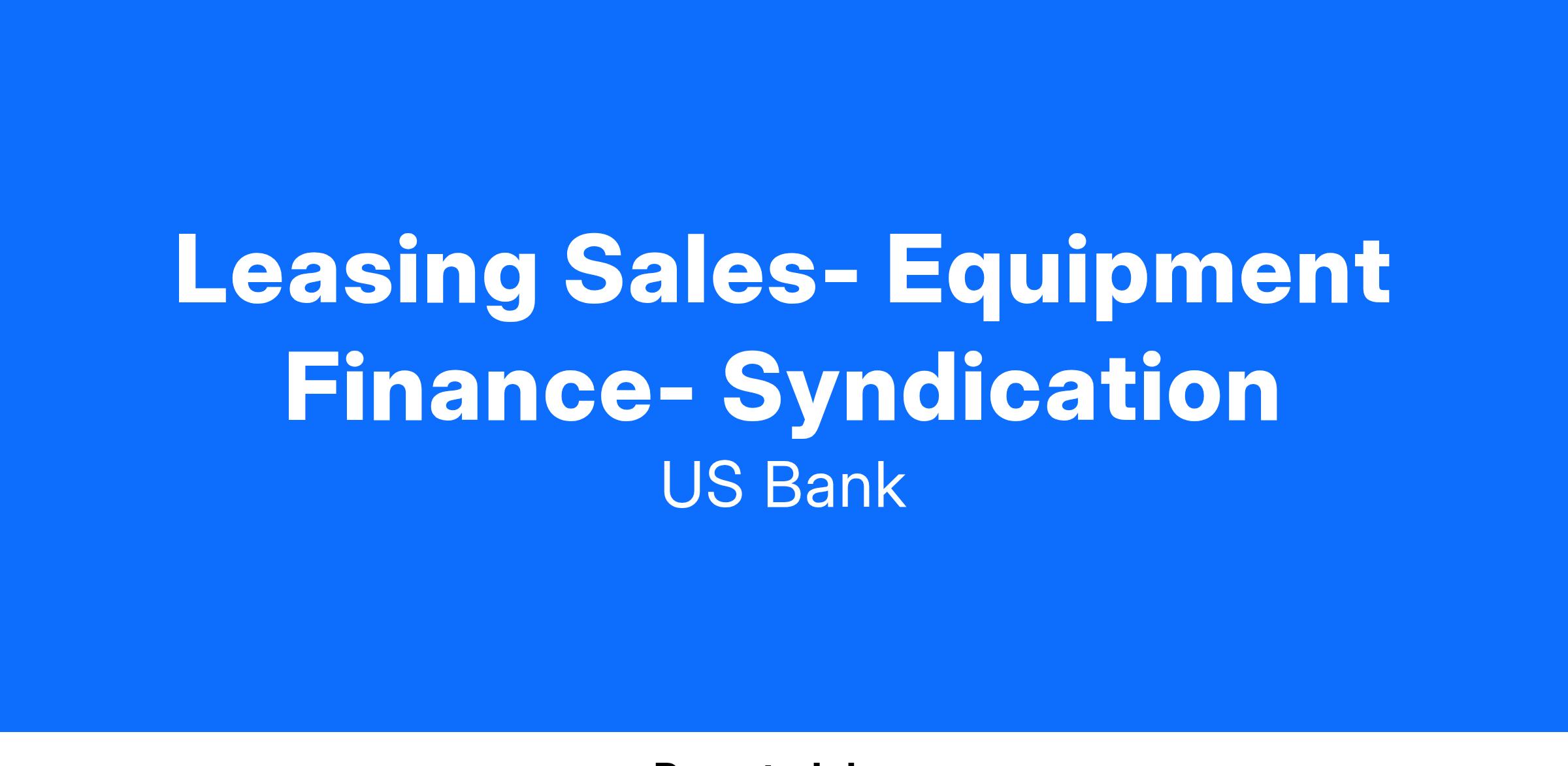 This position is a syndication seller role (syndicator) in the Equipment Finance Capital Markets Group (CMG) and member of the Equipment Finance Bank Markets team. This role will evaluate and execute syndication activities for new business originations, sales out of portfolio and vendor program enhancement. The syndicator works closely with the Capital Markets manager, EF sales management, and internal business processing groups to foster and maintain relationships with bank-affiliated and nonbank capital markets participants. The role requires extensive knowledge of the marketplace, including credit, pricing, tax, structuring, documentation, and residual perspectives. In addition to origination for syndication, the syndicator will periodically consider warehousing assets to be held for sale. The syndicator will offer, prepare, and submit market acceptance opinions to support/enhance EF's credit approval process.
