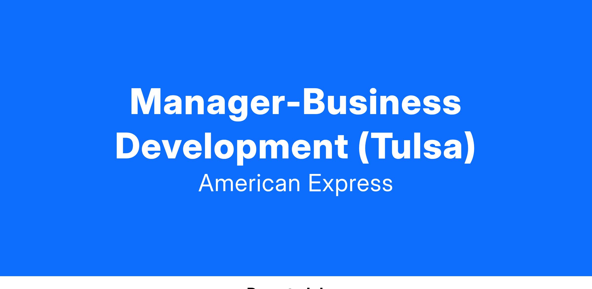 Employment eligibility to work with American Express in the U.S. is required as the company will not pursue visa sponsorship for these positions.