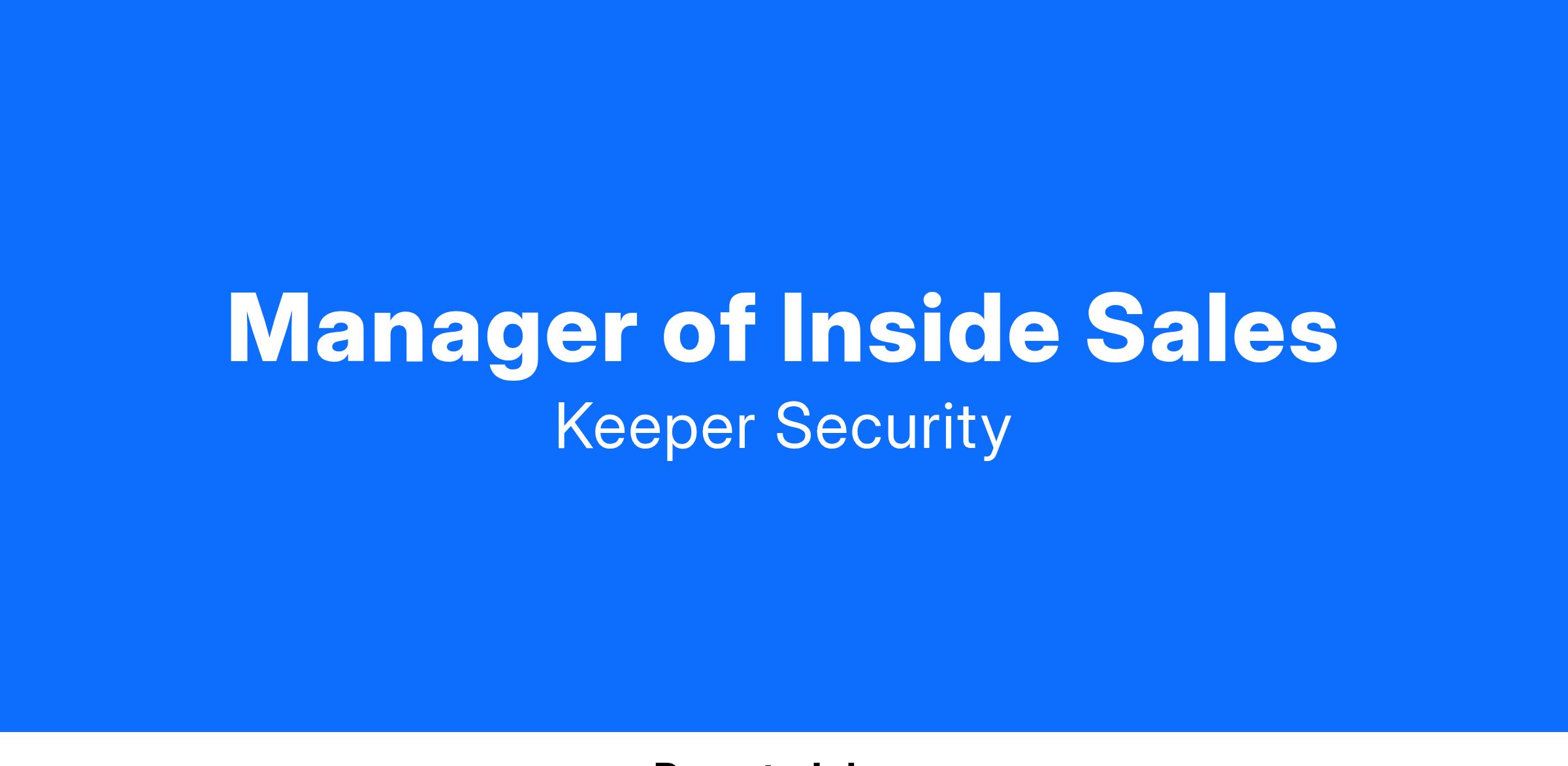 The Manager of Inside Sales will report to the Senior Director of Sales, North America, playing a pivotal role in leading and coaching a high performing team of Inside Sales Representatives for Keeper.
