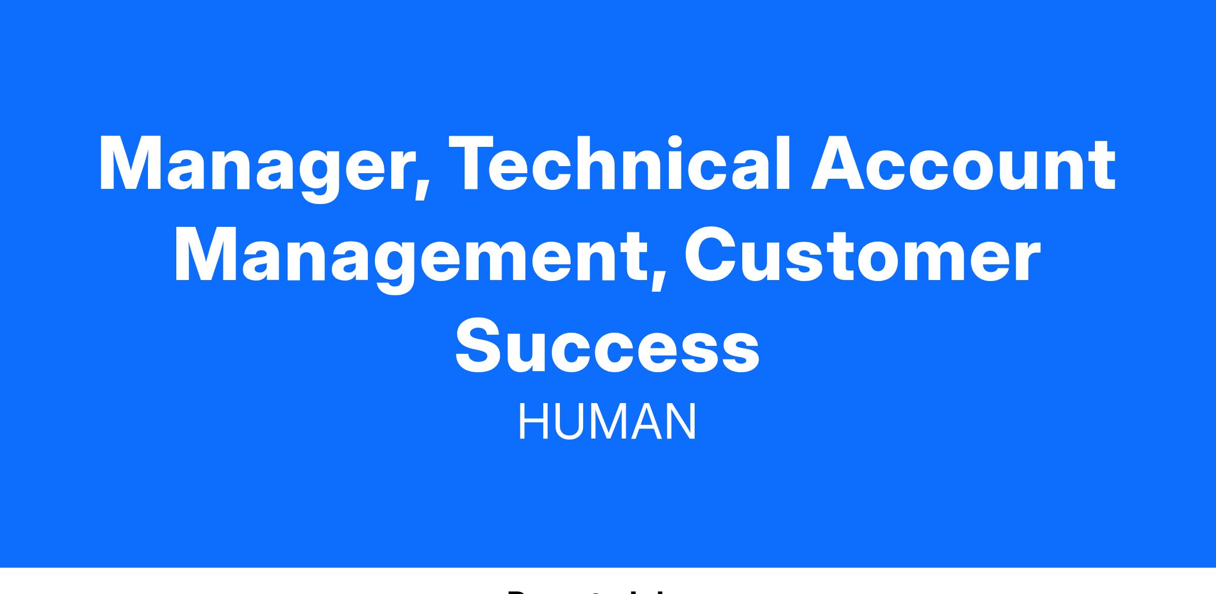 HUMAN is looking for a Manager of Technical Account Managers in the Customer Success Department. This strategic role requires a balance of business and strategy, technical skills, sales, and a proactive approach. This role necessitates a highly motivated team player with expertise in operating effectively in a fast-paced, cross-functional environment and establishing broad senior-level relationships. Candidates should possess a proven track record of delivering results and a roll-up-your-sleeves and 'get it done' attitude. They should also demonstrate strong business acumen, outstanding communication skills, and an ability to effectively build relationships with executive and technical stakeholders, both internally and externally with customers and partners.