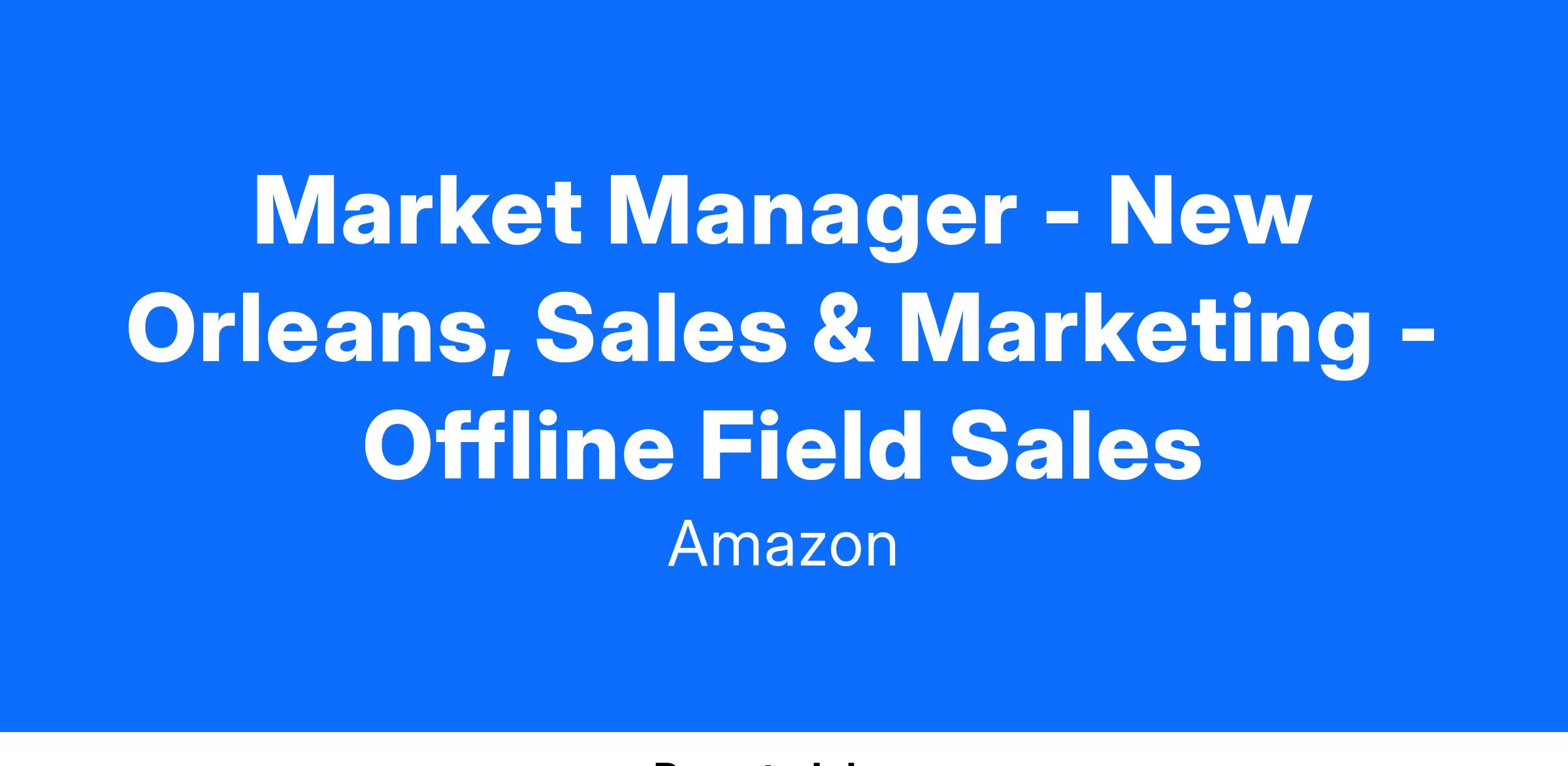 The Amazon Offline Sales & Marketing team is responsible for selling Amazon devices into physical retailers across the United States and Canada. Market Managers lead sales and marketing initiatives for Amazon and its branded products in retail locations. They are responsible for the in-store experience, fostering relationships, training at the store/district level, and promoting Amazon and its brands through customer interactions. Market Managers are focused on increasing sales of Amazon and its branded products in retail stores and educating store associates and consumers on the value of Amazon devices, accessories and Amazon in general.