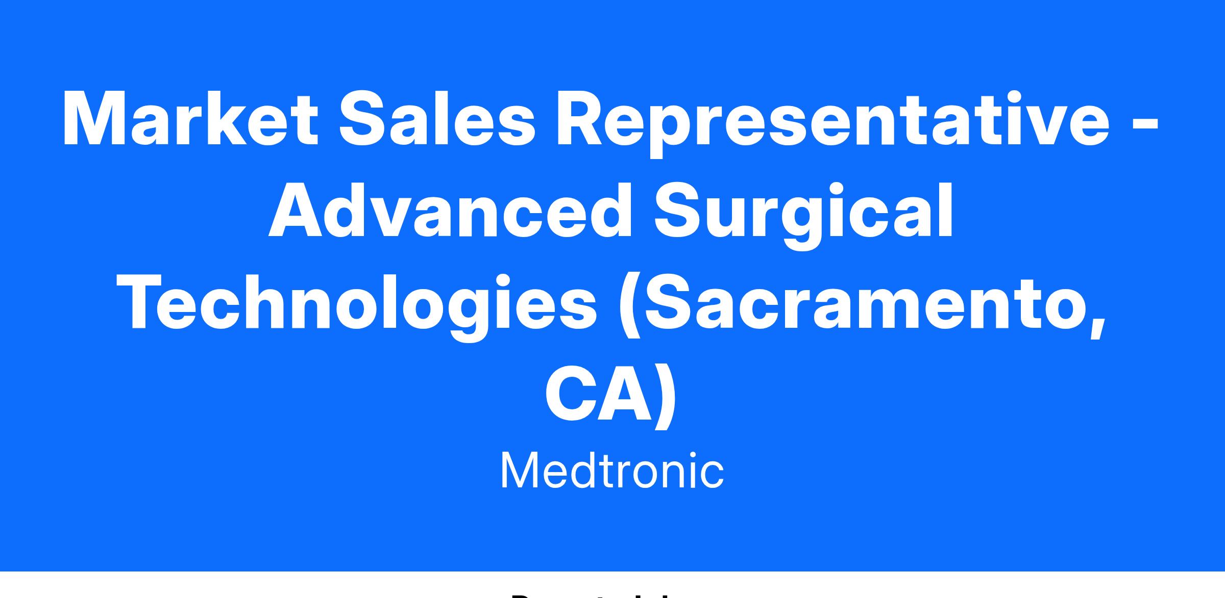 A Market Sales Representative is expected to achieve annual sales objectives through selling and supporting the Company’s advanced surgical and energy-based products, while representing Medtronic to the customer in accordance with Company policies and AdvaMed guidelines. Market Sales Representatives develop clinical and administrative relationships in assigned accounts and formulate a "defend" territory strategy, accounting for competitive pressures and local market conditions. Market Sales Representative is expected to demonstrate High Performance Practices and competencies as they meet and exceed objectives for this role.