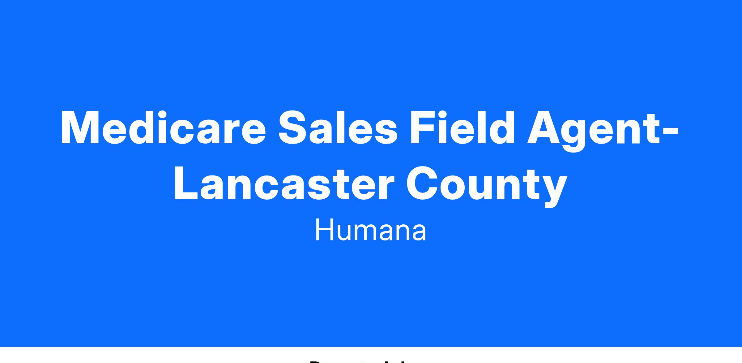 Medicare Sales Field Agent- Lancaster County