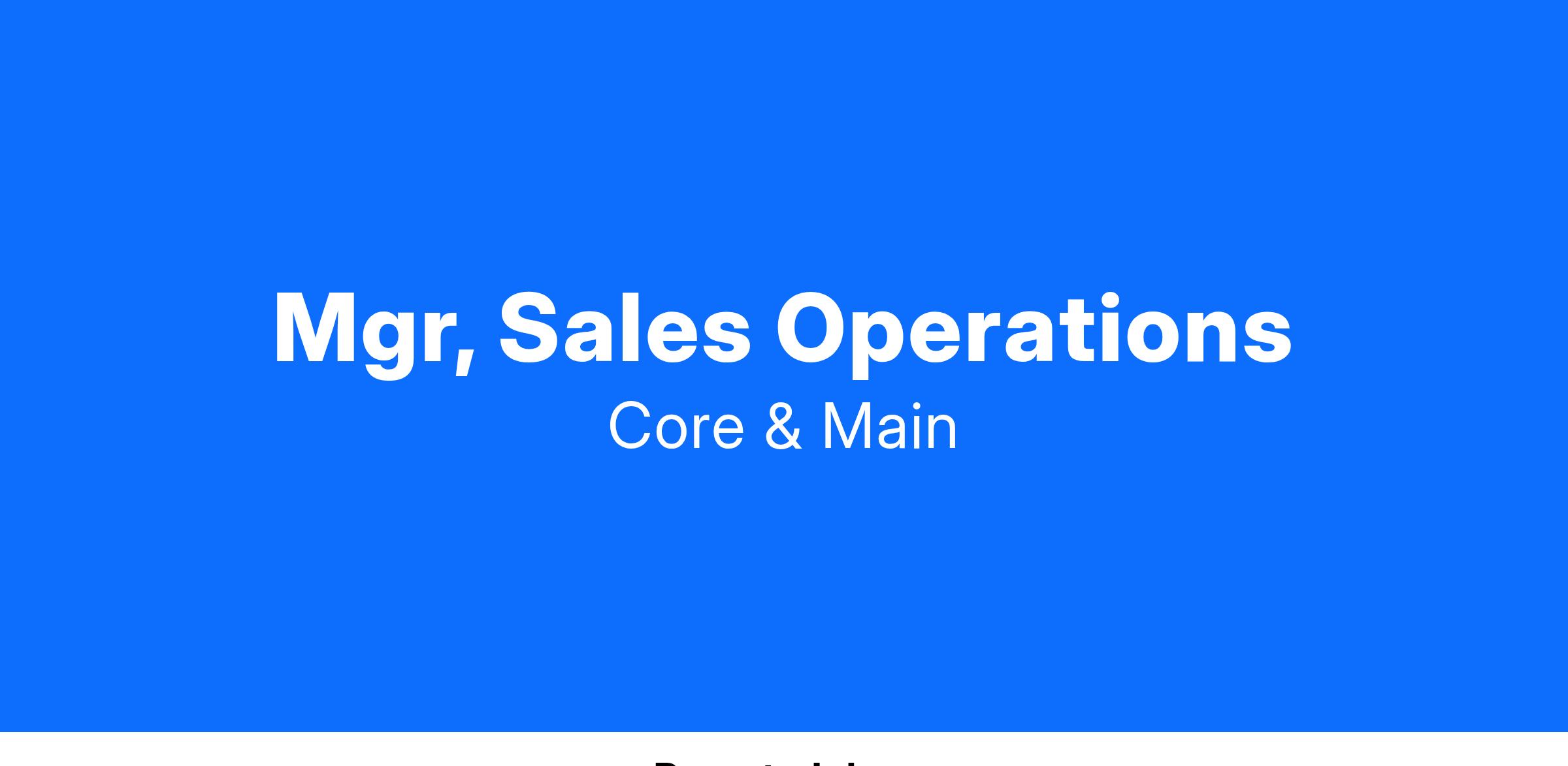 Company Overview EGW Utilities Overview: EGW, a subsidiary of Core & Main, is a wholesale distributor and manufacturer’s representative of natural gas, underground utility, waterworks and plumbing products and services. The company was incorporated in 2001 and has its headquarters in Carrollton, TX (DFW area). EGW operates two distinct sales groups. The companies’ efforts in the USG are primarily focused on the southcentral US and the WPG has a national footprint. Job Description / Qualifications Job Summary Responsible for driving and managing the successful execution of sales strategies and plans for national, regional or local markets. Orchestrate and direct resources to drive profitable sales revenue and growth. Optimize sales effectiveness in partnership with other sales partners. Engage and inspire the team to drive profitable business results. Monitor, analyze, and report on sales results. Define and plan the national, regional, and local selling organization to optimize resources. Facilitate the staffing process, provide input to other channels on organizational needs, associate actions, and sales team development. The USG Sales Manager has direct responsibility for continuing the sales growth and profitability of the EGW Utility Services Group’s (USG) product lines by interfacing through their team’s prioritized utility and municipal customers. The USG Sales Manager will work closely with the VP of Sales and Marketing to set strategic division goals as well as individual goals and targets for their team. In addition, the USG Sales Manager will play a key role in product development and acquisition, staffing, training, budgeting and forecasting for the USG division. The position will also be responsible for CRM Management utilizing EGW’s Tour De Force application to ensure team members are achieving goals and managing both opportunities and accounts efficiently. Extensive overnight travel is required– as much as 60%. Travel will include onsite meetings with customers, trade shows/event and suppliers/vendor facility visits. Principal Responsibilities and Duties include, but not limited to: Utilizes CRM to manage all aspect of the Customer Relationship Management process within the division. This includes plans to manage key opportunities and account information through TDF. Execute a division sales plan that meets or exceeds established sales quotas and supports EGW’s revenue and profit targets. Execute and set individual sales targets and KPIs with all members of the sales team. Coordinate regularly with team members within the division to understand their dynamic business needs and position EGW support staff to meet those needs. Maintain consistent communication and timely follow-up with key customer and prospects within the territory and be available and responsive to customer needs. Work effectively with internal support departments (Marketing, Customer Service, etc..) to promote sales for new and existing customers to maximize visibility with EGW’s target customers. Plan and direct semi-annual evaluations with sales team members to review performance and set/reset goals and expectations. Strategically forecast division revenue to assist in managing budgetary and inventory information Analyzes markets, determines trends, and outlines the competitive landscape to develop product targets and services that would enhance EGW growth. Stay abreast of current and upcoming market conditions and product requirements. Provide aid in New Product Development and documentation to sales and operations as new lines or opportunities arise. Providing solutions to customer’s problems and responding timely to issues. Attending trade shows and conferences and buying group meetings. Complete sales activity reports and presentations in a timely manner. Develop and maintain an awareness of market behavior and competitive trends and respond accordingly. Other key duties may be assigned as needed to help EGW succeed. Preferred Qualifications Required Education and Experience: College degree or equivalent Minimum 5 years outside business-to-business sales management experience with proven record of accomplishment of success. A valid driver’s license and proven safe driving record. Computer proficiency in Windows and Microsoft Office Suite applications. Must present and communicate in a professional manner Excellent verbal and written communication skills Must be organized with good time management skills Must be self-motivated and able to work independently to meet and exceed sales goals Experience with gas utilities is preferred Preferred Education and Experience: Bachelor’s Degree in Business, Marketing, Sales or related field preferred Legally eligible to work in the United States Minimum 7 years outside business-to-business sales management experience in the utilities industry Must successfully complete pre-employment testing. Training in recent sales techniques. Technical aptitude. Pay: $80,473.81 - $114,962.59 per year About Core & Main Based in St. Louis, Core & Main is a leading distributor of water, sewer, storm drain and fire protection products in the United States. Operating approximately 320 branches nationwide, the company combines local expertise with a national supply chain to provide contractors and municipalities innovative solutions for new construction and aging infrastructure. Core & Main’s 4,500 plus associates are committed to the safe distribution of water and fire protection to help communities thrive. Visit www.coreandmain.com to learn more. EEO Statement Core & Main is an Equal Employment Opportunity employer. Employment at Core & Main is based solely on a person’s merit and qualifications directly related to professional competence. Core & Main does not discriminate against any employee or applicant on the basis of race, creed, color, religion, national origin, nationality, ancestry, age, disability, veteran status, pregnancy or related condition (i