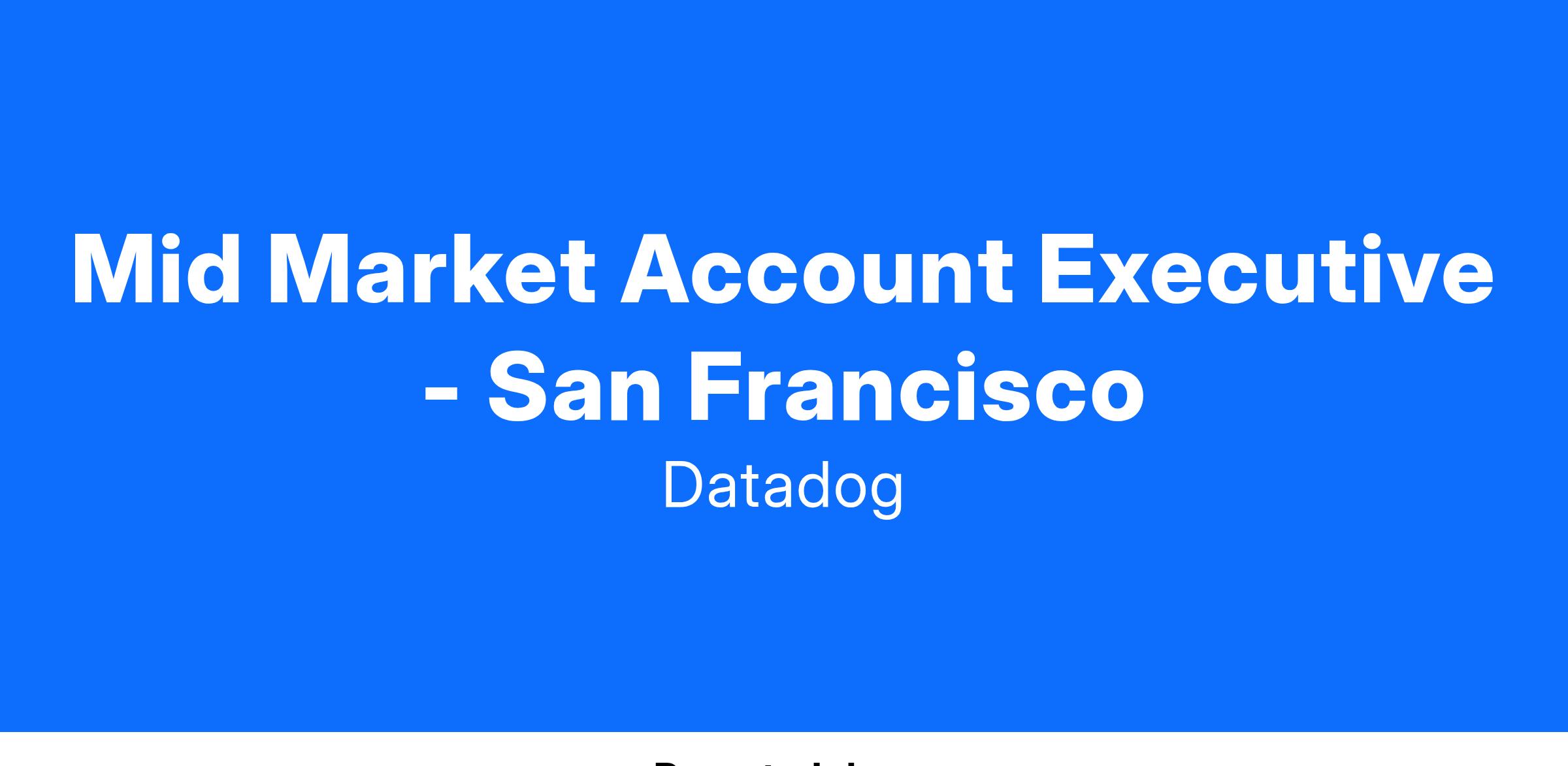 As a Mid-Market Account Executive, you will assist in Datadog’s overall business growth by strategically engaging and closing net-new customers across mid-to-large size markets. Sellers follow a well-defined methodology, collaborate with internal stakeholders, identify the customer's unique needs, and clearly convey the value of the Datadog product. Mid-Market reps have the opportunity to grow their careers in Sales and continue contributing to Datadog team success.