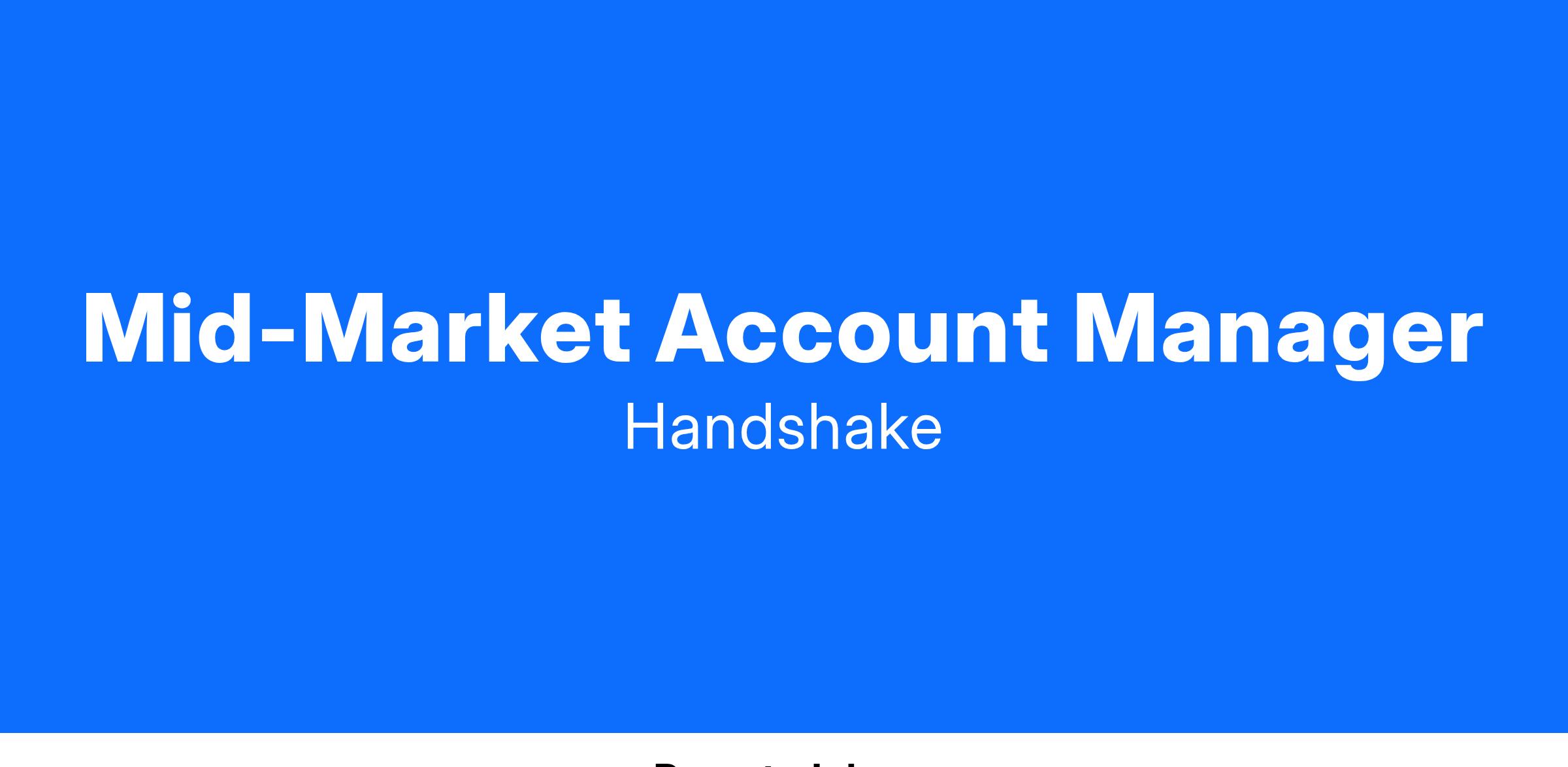 Handshake is looking for an Account Manager to join our Employer Sales Team in the Mid Market Segment- working with top employers across the nation to drive their early talent recruiting strategy. You will serve as the primary owner of a set book of existing employer partners, working closely with them to ensure they achieve their goals, build relationships with executives, and drive customer retention and expansion from onboarding through renewal.