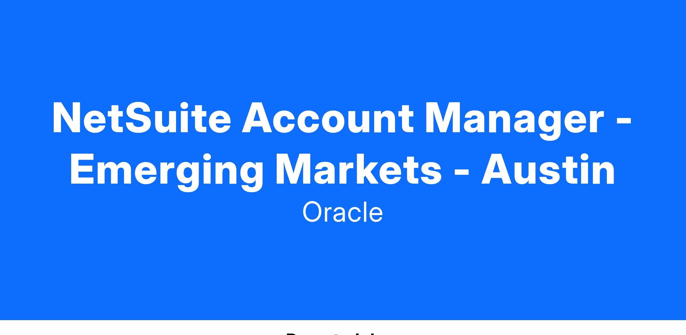 We are seeking Sales Account Managers with a successful background selling software, hardware or business services in your area. You’ll maintain relationships within a portfolio of NetSuite customers to ensure the continued adoption and expansion of NetSuite’s cloud-based business operations system, including Enterprise Resource Planning (ERP), Accounting, Customer Relationship Management (CRM), Professional Service Automation (PSA), and eCommerce