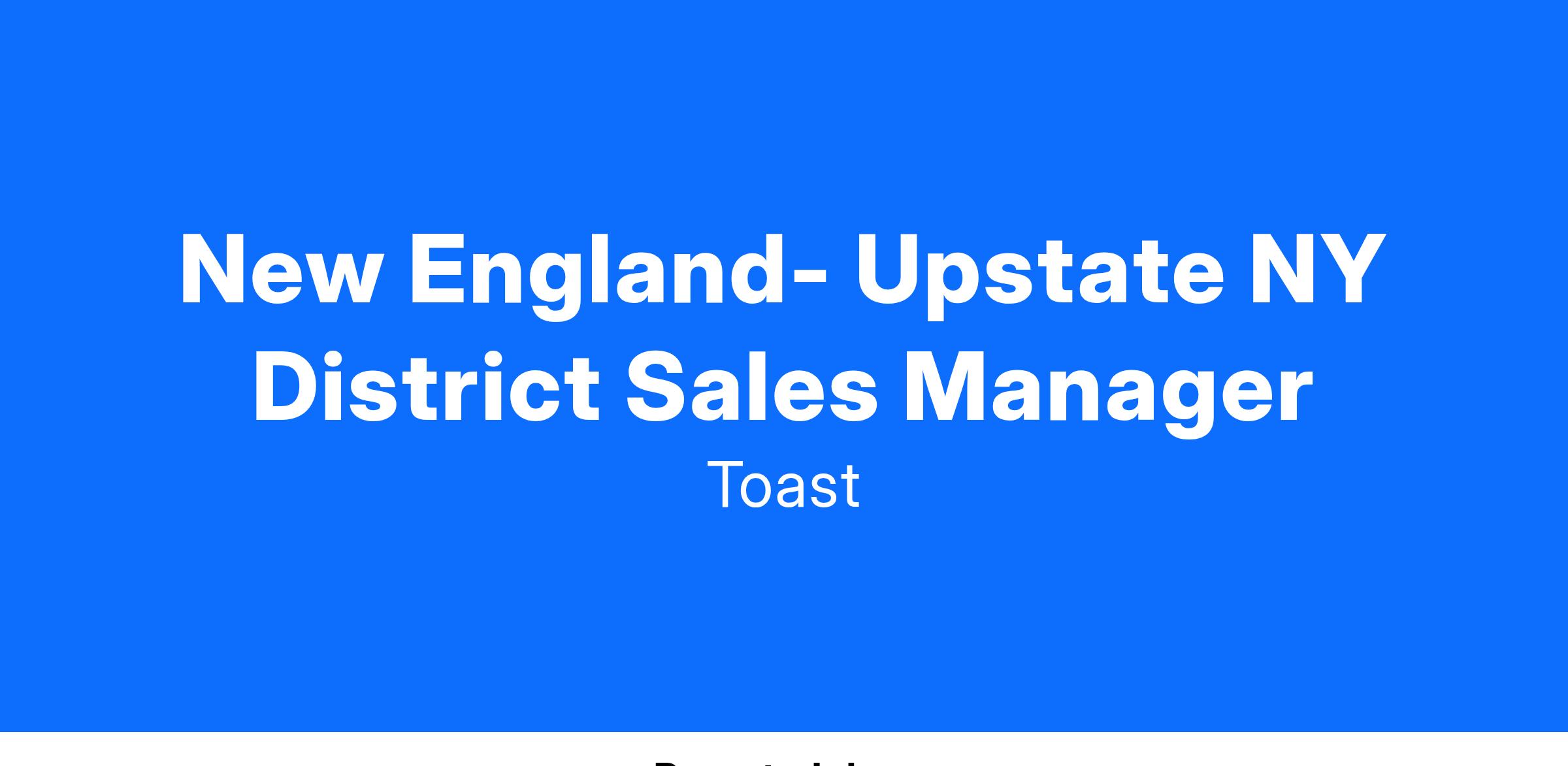 Toast is driven by building the all-in-one restaurant platform that helps restaurants operate their business, increase sales, engage guests, and keep employees happy. As a Sales Manager, you are pivotal to the growth of the Toast brand in your district. You will report into a Regional Vice President and will hire, build, and coach a team of Territory Account Executives who are in the field everyday transforming the way restaurants operate. Youβll work closely with your sales team on how to understand restaurantsβ unique needs and develop customized solutions that help their businesses thrive.