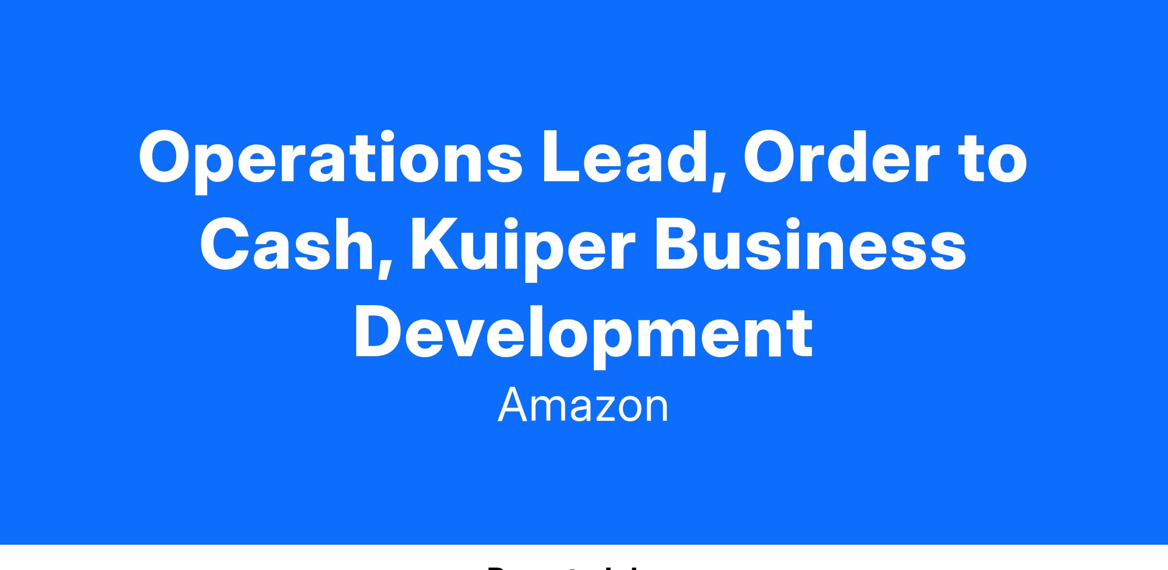 The Principal Business Operations role will be at the forefront of driving programs related to payments, billing, invoicing, tax, accounting and reporting for Kuiper. In this role, you should be comfortable juggling between thinking big and the operational nuances of the work. You must be able to motivate and empower your team while having the backbone to support them when needed. You must be a self-starter with strong analytical and planning ability while being able to navigate the ambiguous landscape of Kuiper business. You must demonstrate strong ability to work with cross functional team and align on a shared strategy. This role will be the single threaded owner (STO) for large, complex, and strategic business and technology initiatives. The role will own project plans, align teams, and track progress for multiple inter-connected work streams.
