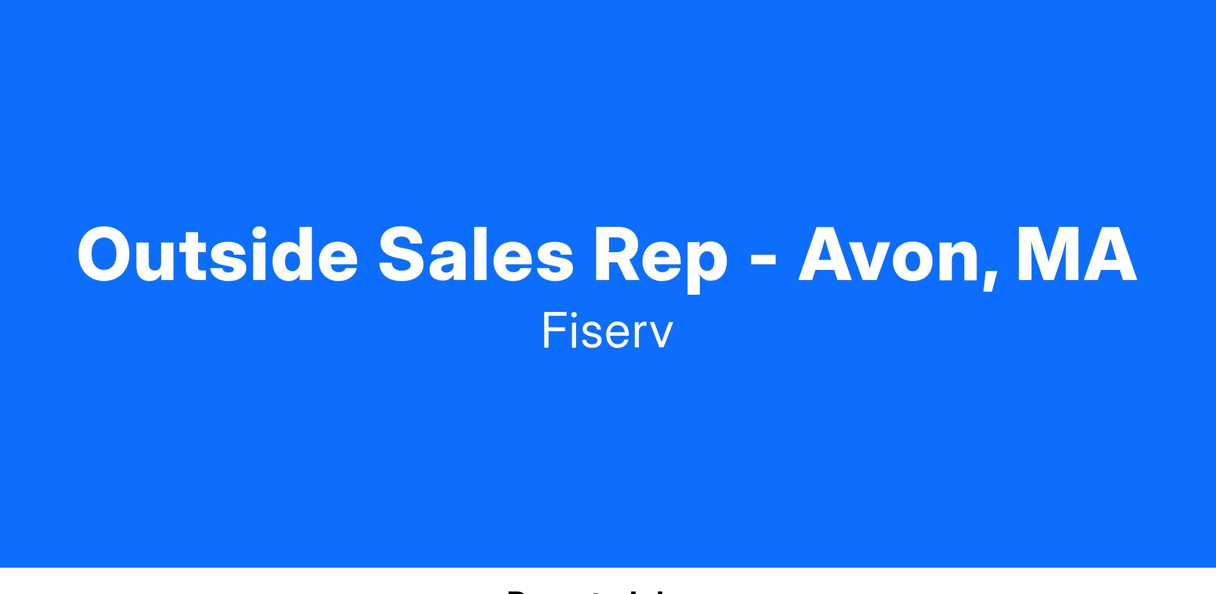 Outside Sales Rep - Avon, MAWhat does a successful Sales Rep do at Fiserv?