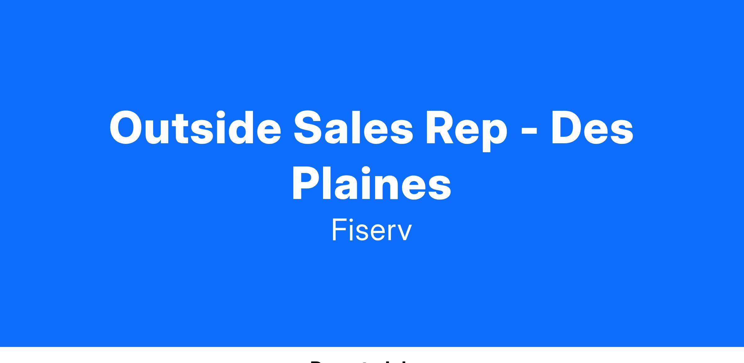 Outside Sales Rep - Des PlainesWhat does a successful Sales Rep do at Fiserv?