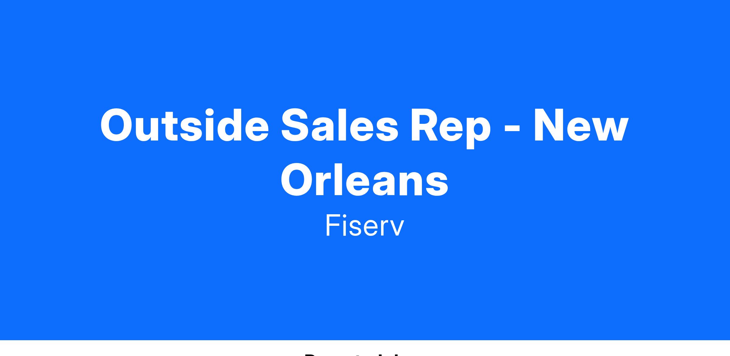 Outside Sales Rep - New OrleansWhat does a successful Sales Rep do at Fiserv?