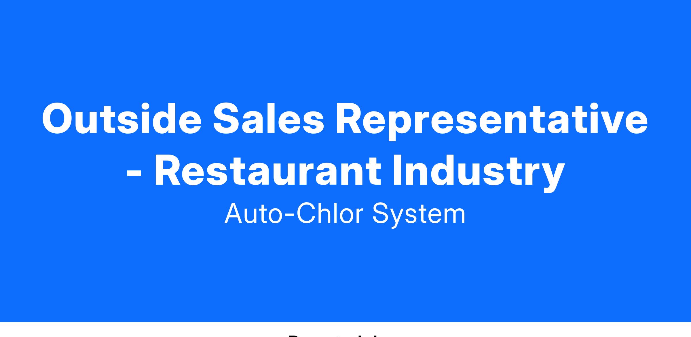 Join Auto-Chlor Systems as a Territory Sales Representative and seize the opportunity to sell to restaurants throughout the Spokane Valley marketplace. With territory expanding from parts of Idaho, all the way to the Tri-Cities, the restaurant industry is an exciting market with the chance to connect with a diverse and interesting clientele. Enjoy high commissions, a short sales cycle for strong cold callers and closers, and support from a great team.