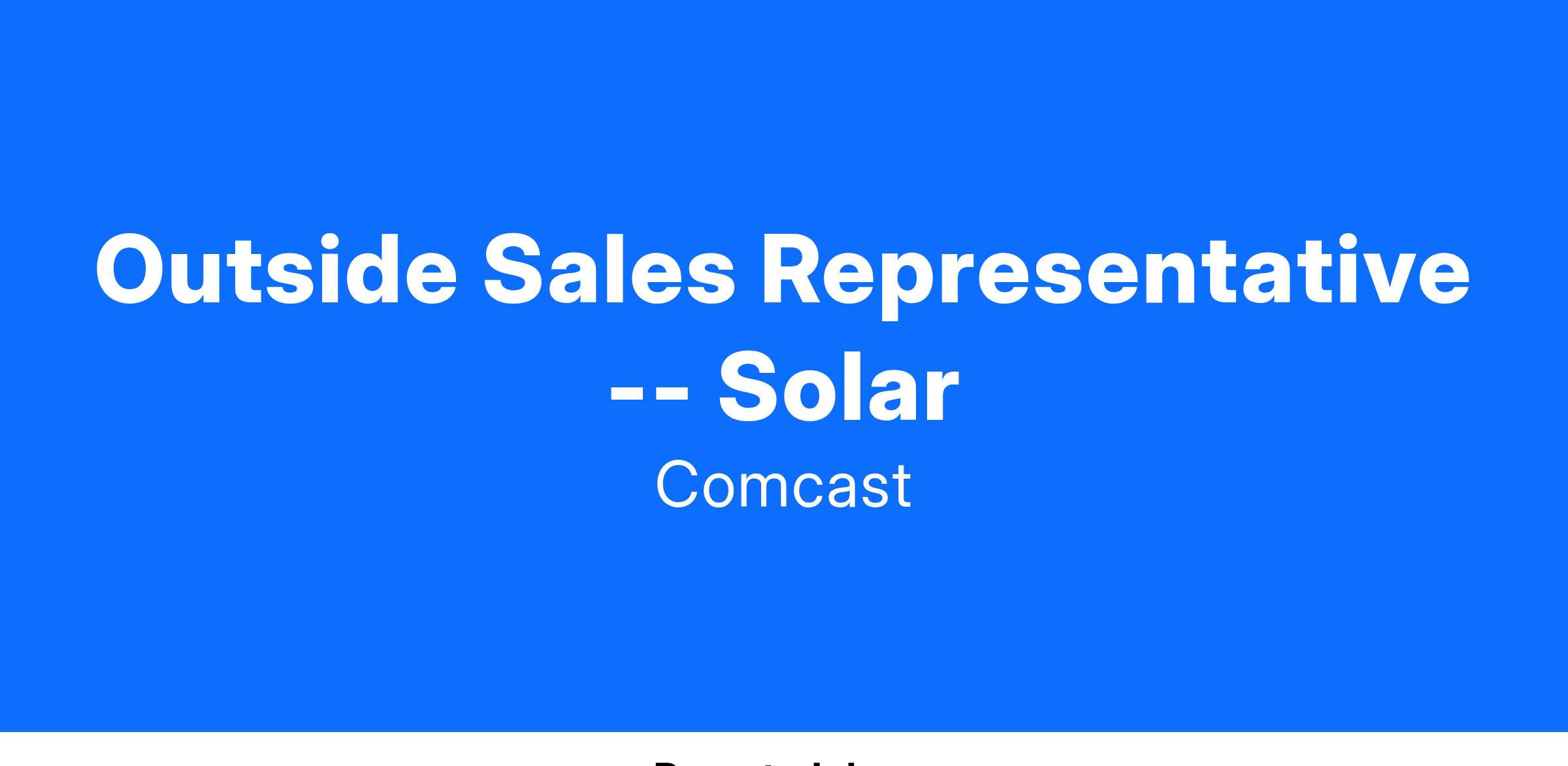 This job is responsible for outside solar panel sales involving the selling, leasing, and installing of solar panels, related products and services, and associated warranties. Works with moderate guidance in own area of knowledge.