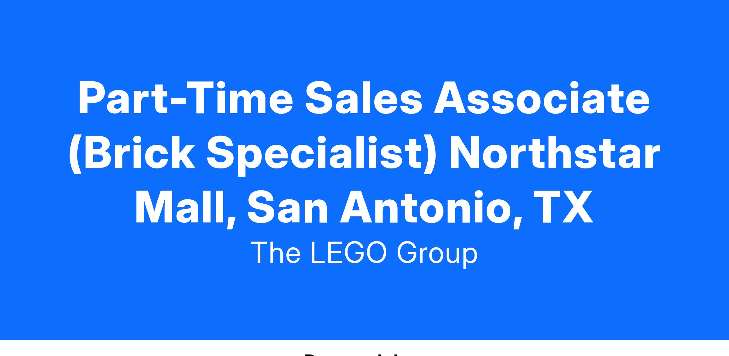 Join the LEGO® Brand Retail team as a Sales Associate (Brick Specialist) and provide inspirational guest experiences in an interactive and vibrant store environment. We are looking for energetic, enthusiastic individuals to join us on a part-time basis.
