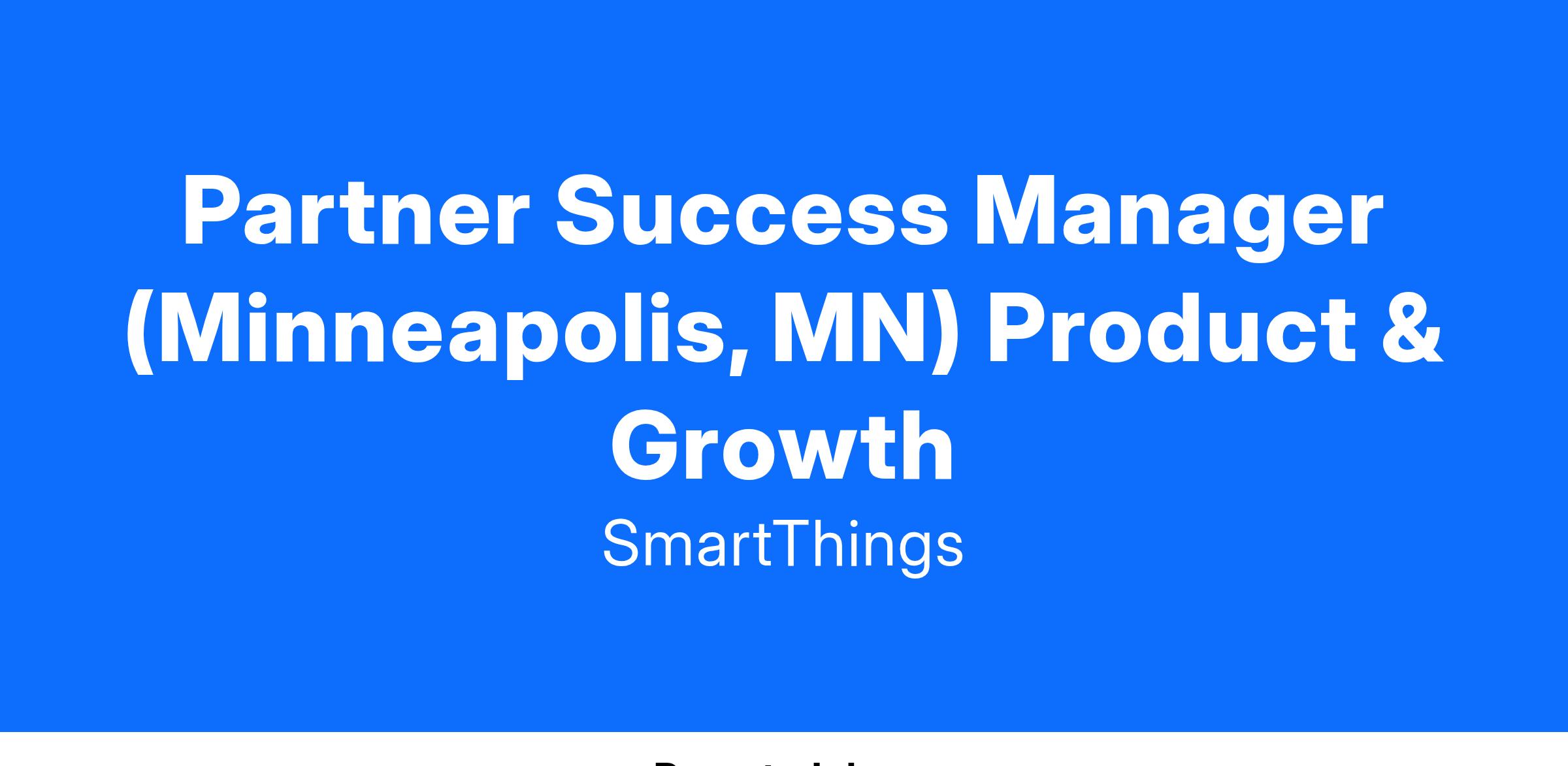 - Partner Success: Collaborate with third party companies to create highly impactful device integrations on the SmartThings platform, driving brand awareness for our partners, and delivering an exceptional customer experience for our users.
